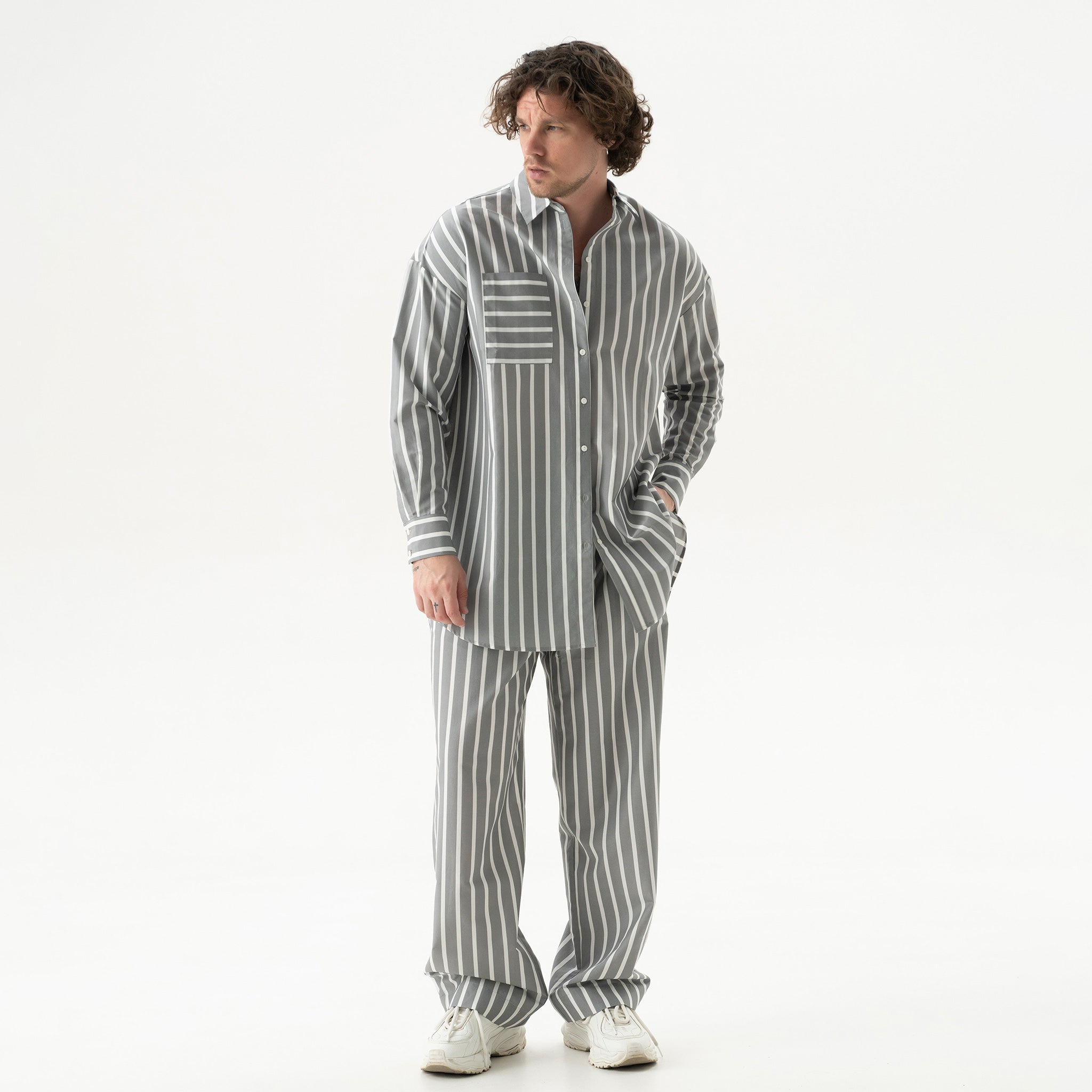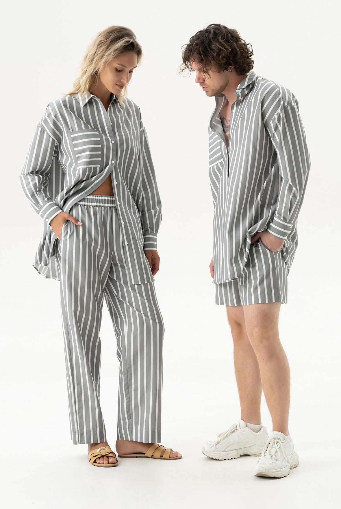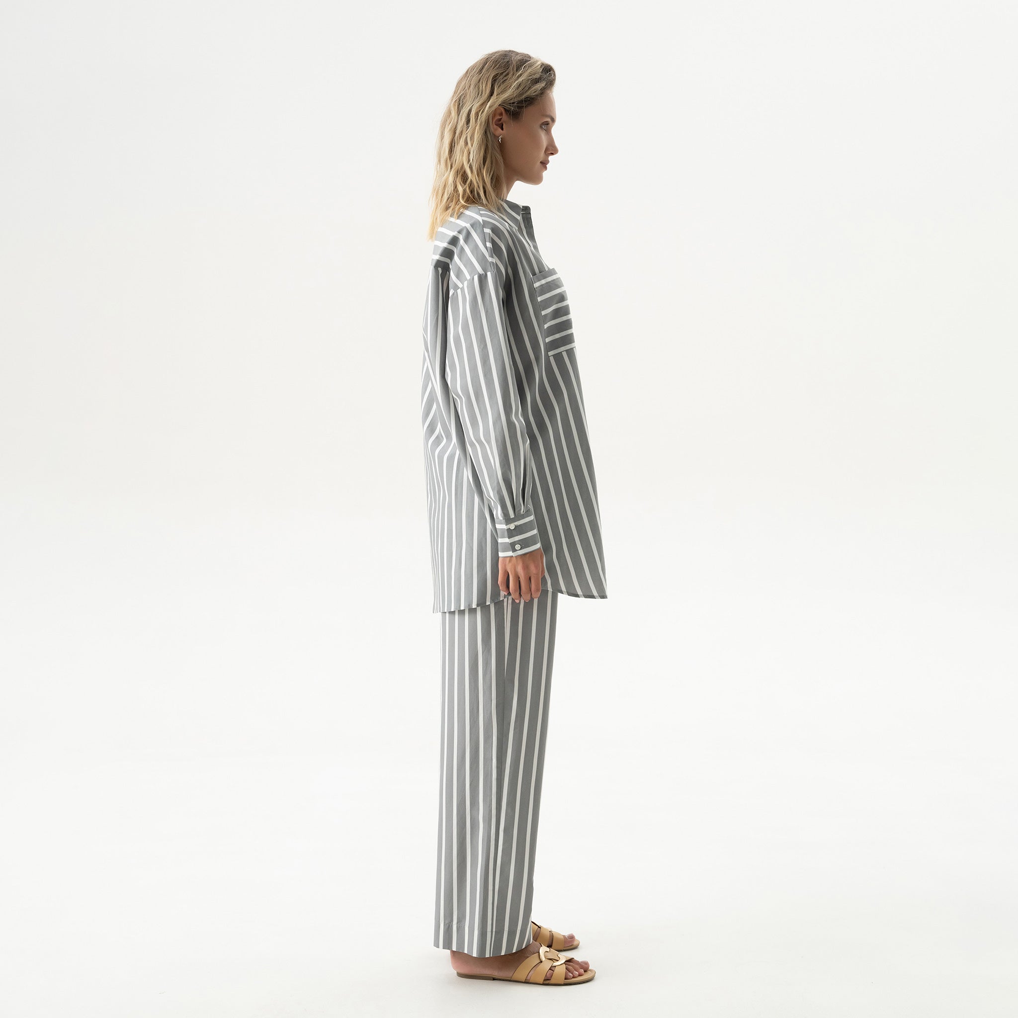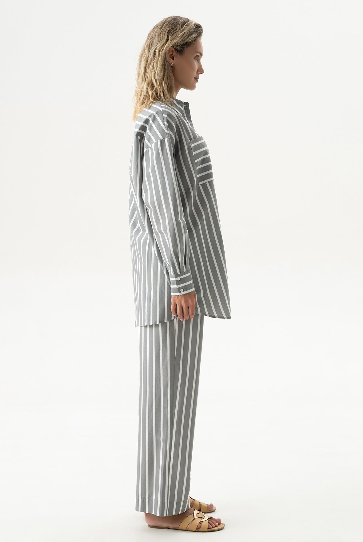 The Strapped Cotton unisex striped pants are crafted from soft, lightweight cotton, featuring a relaxed fit and an effortless, easygoing shape.