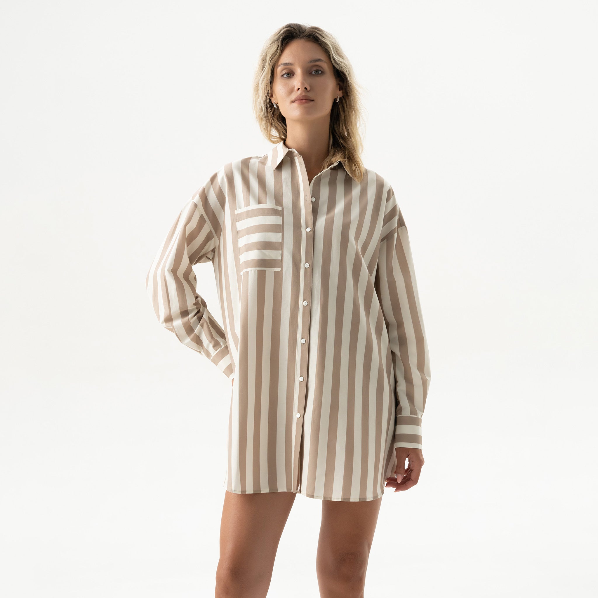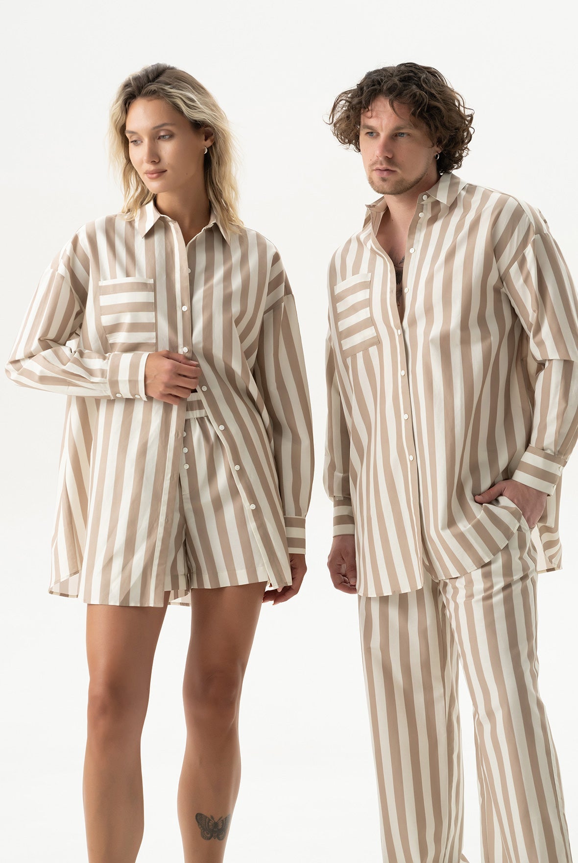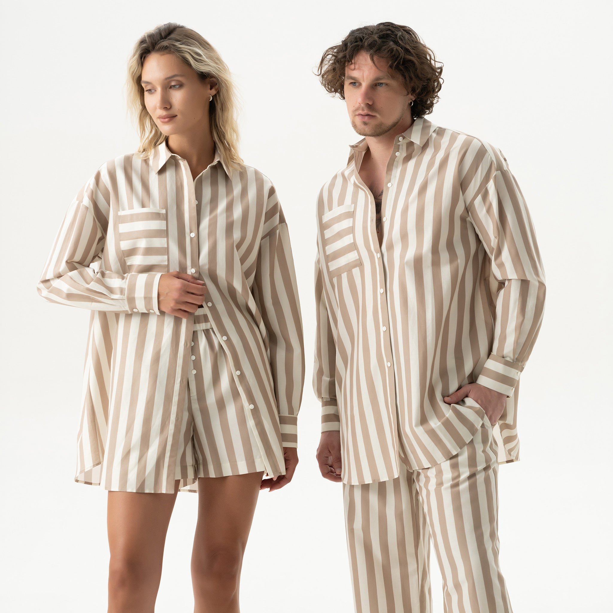 The Strapped Cotton shirt in Oat Milk is crafted from feather-light cotton with a relaxed, oversized cut. This unisex, one-size piece features a structured drop-shoulder design and a button-down front, making it the perfect blend of comfort and minimalism.