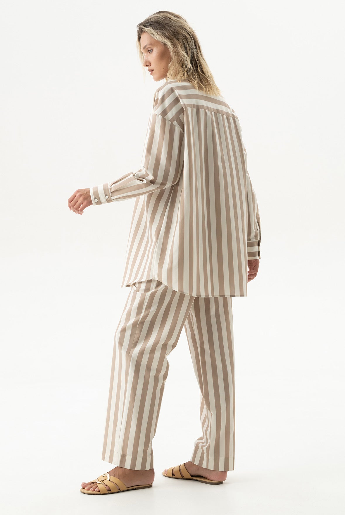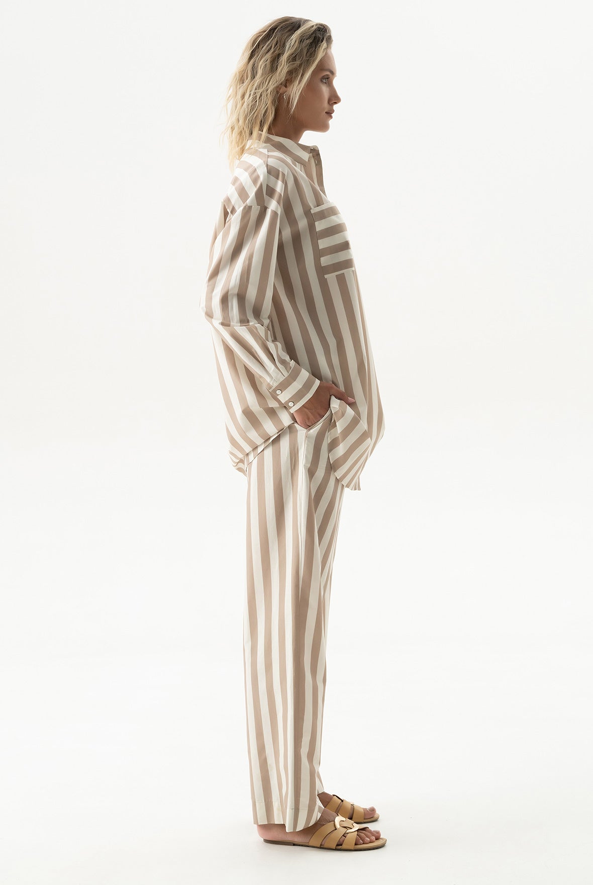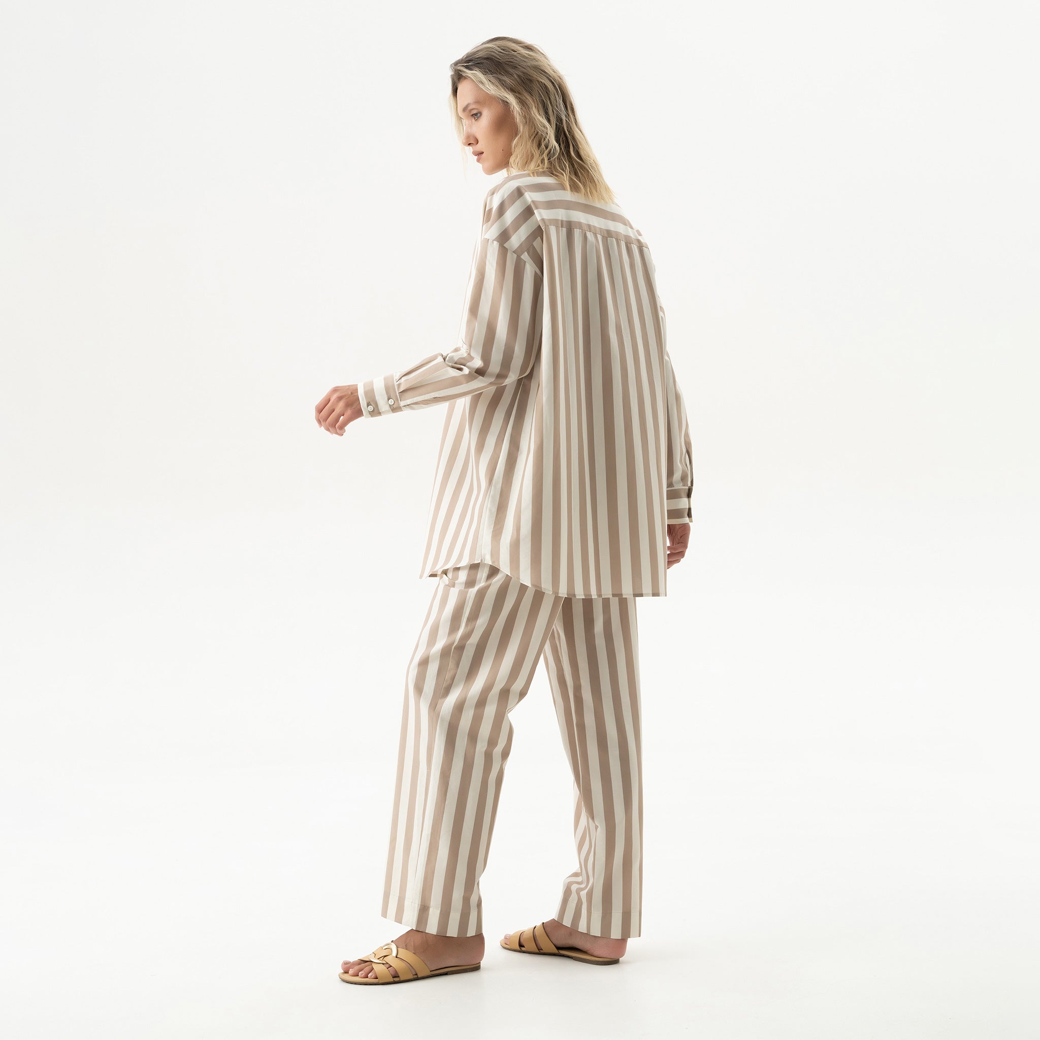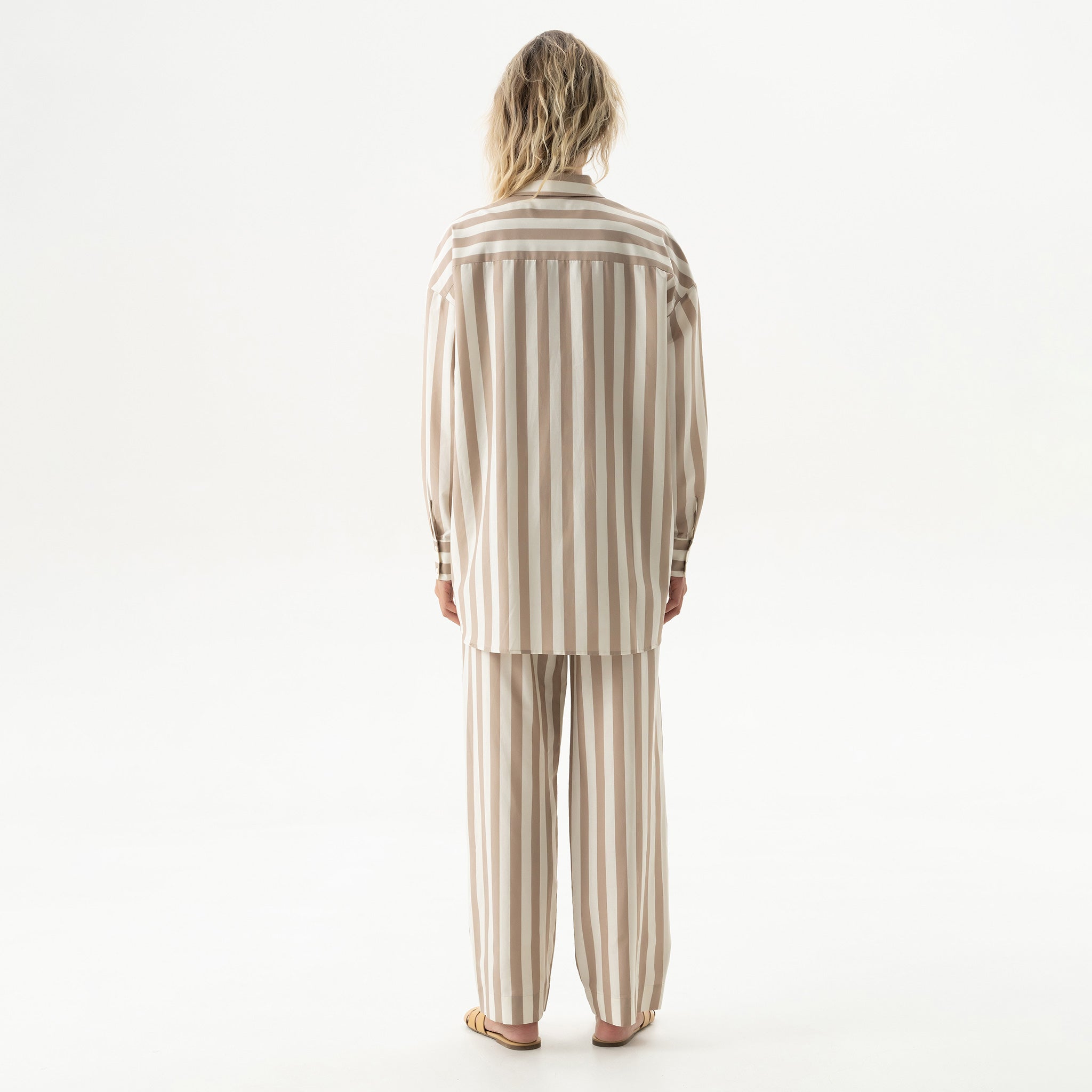 The Strapped Cotton shirt in Oat Milk is crafted from feather-light cotton with a relaxed, oversized cut. This unisex, one-size piece features a structured drop-shoulder design and a button-down front, making it the perfect blend of comfort and minimalism.