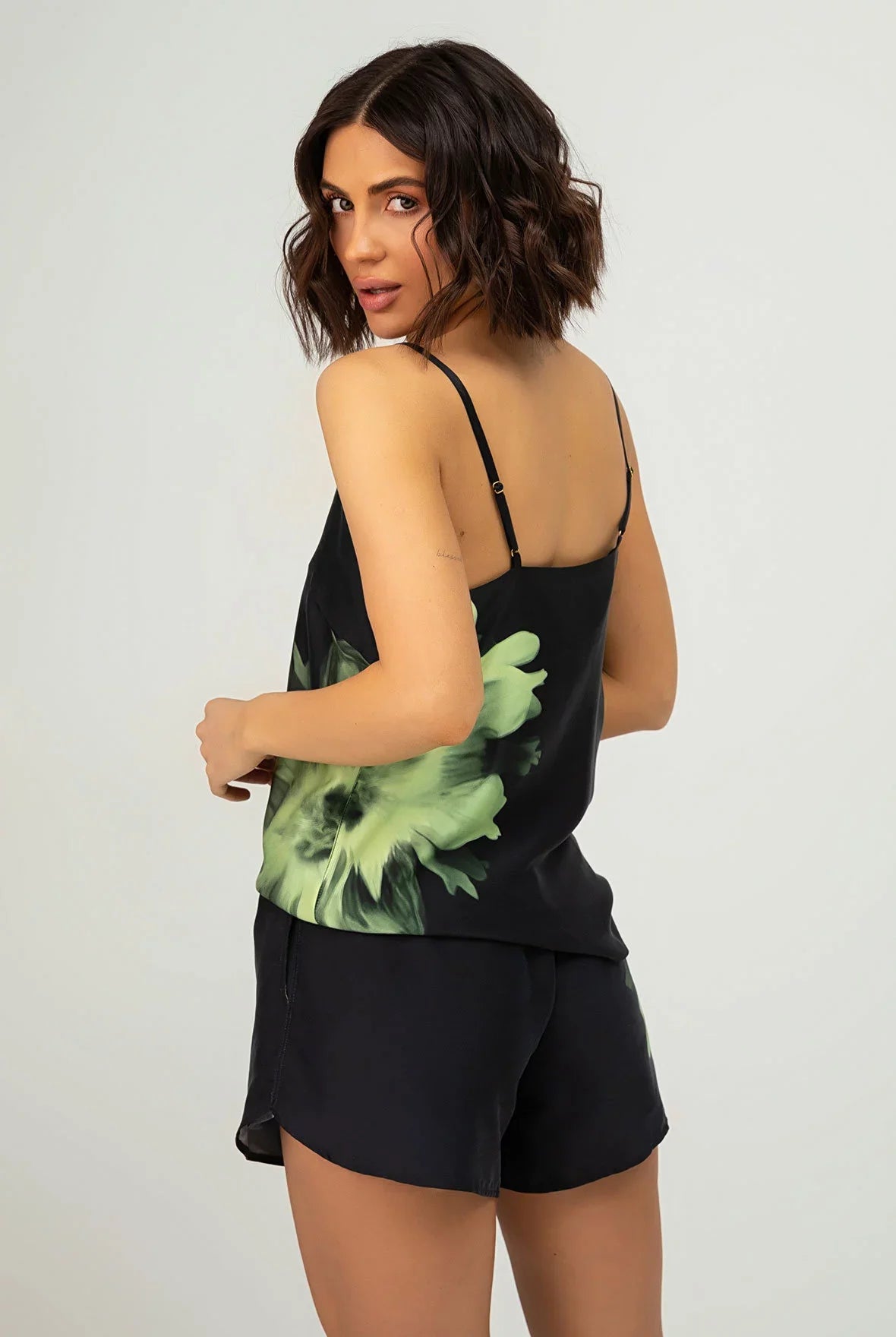 The Silk Dreamscape Camisole is crafted from washable, 100% Mulberry Silk and has thin, adjustable straps. It will work for different body shapes and highlight your curves and natural beauty.