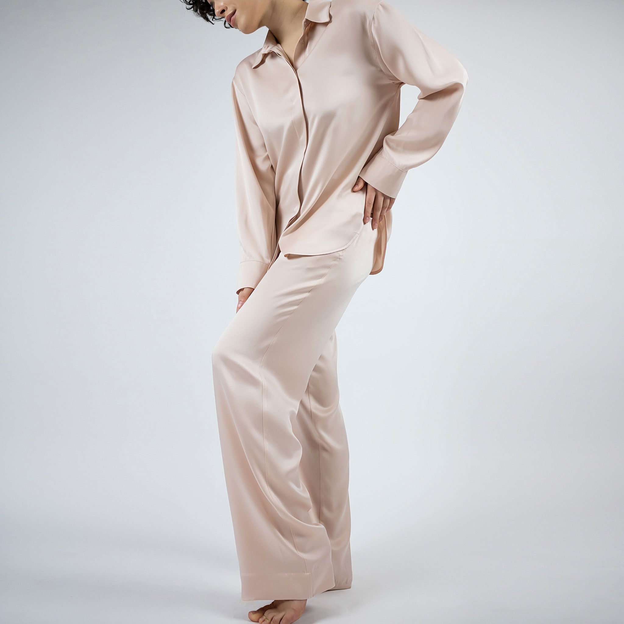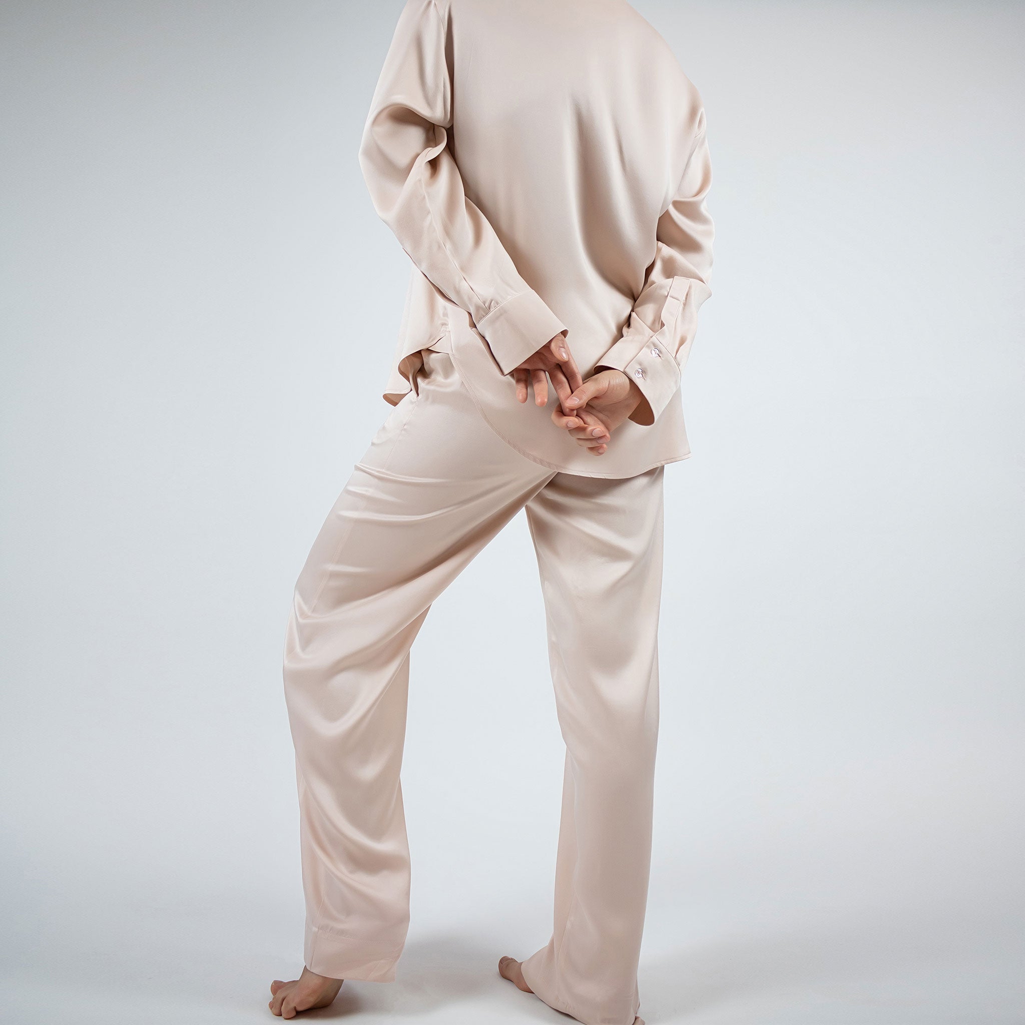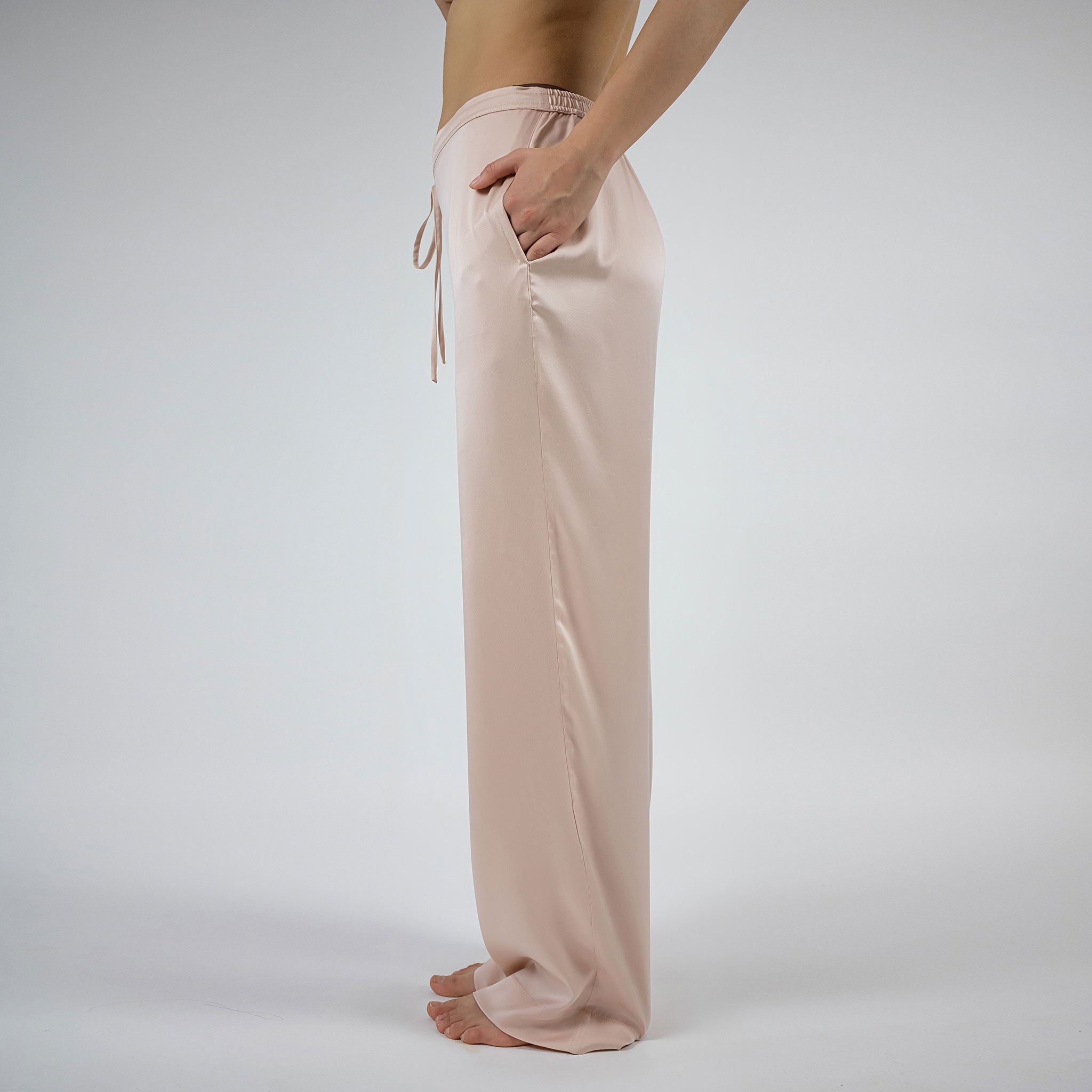 The Silk Dreamscape pants are designed from washable, 100% Mulberry Silk. It is made by specialized farms where silkworms are fed organic mulberry leaves.
