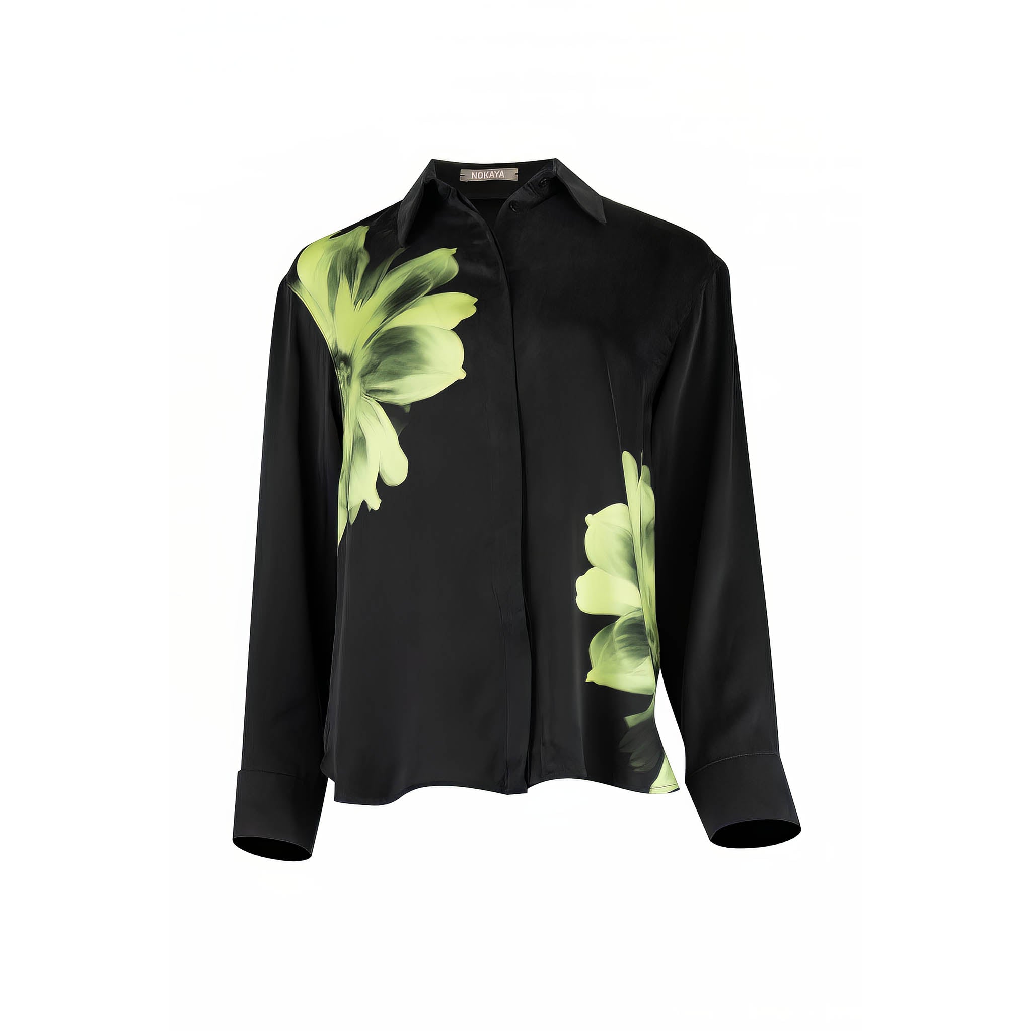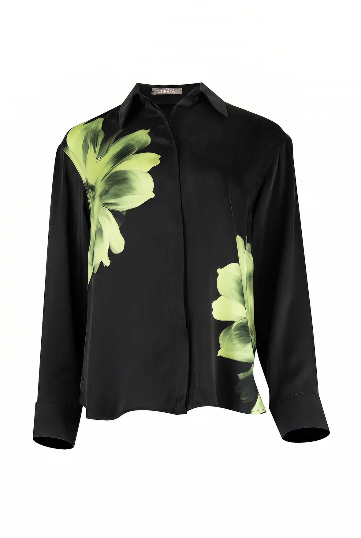 The stunning black hue with a beautiful design featuring cool matcha floating flowers adds elegance to your loungewear collection, while the calming green pastel soothes the mind and brings a sense of rest and reflection.