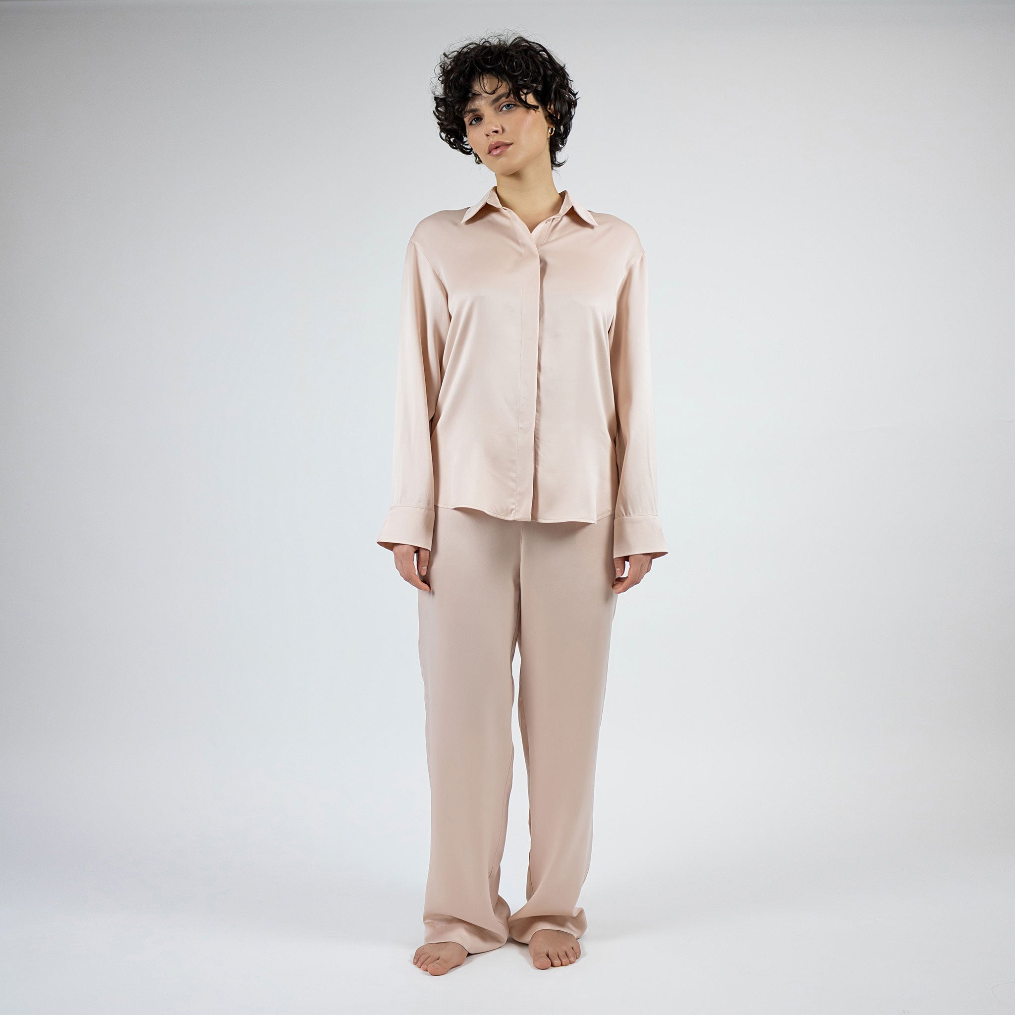 The Dreamscape Pyjama Shirt is fashioned from pure and washable Mulberry Silk, delivering a decadently smooth touch to the skin. Designed with a relaxed straight cut, the neat collar and concealed buttons.