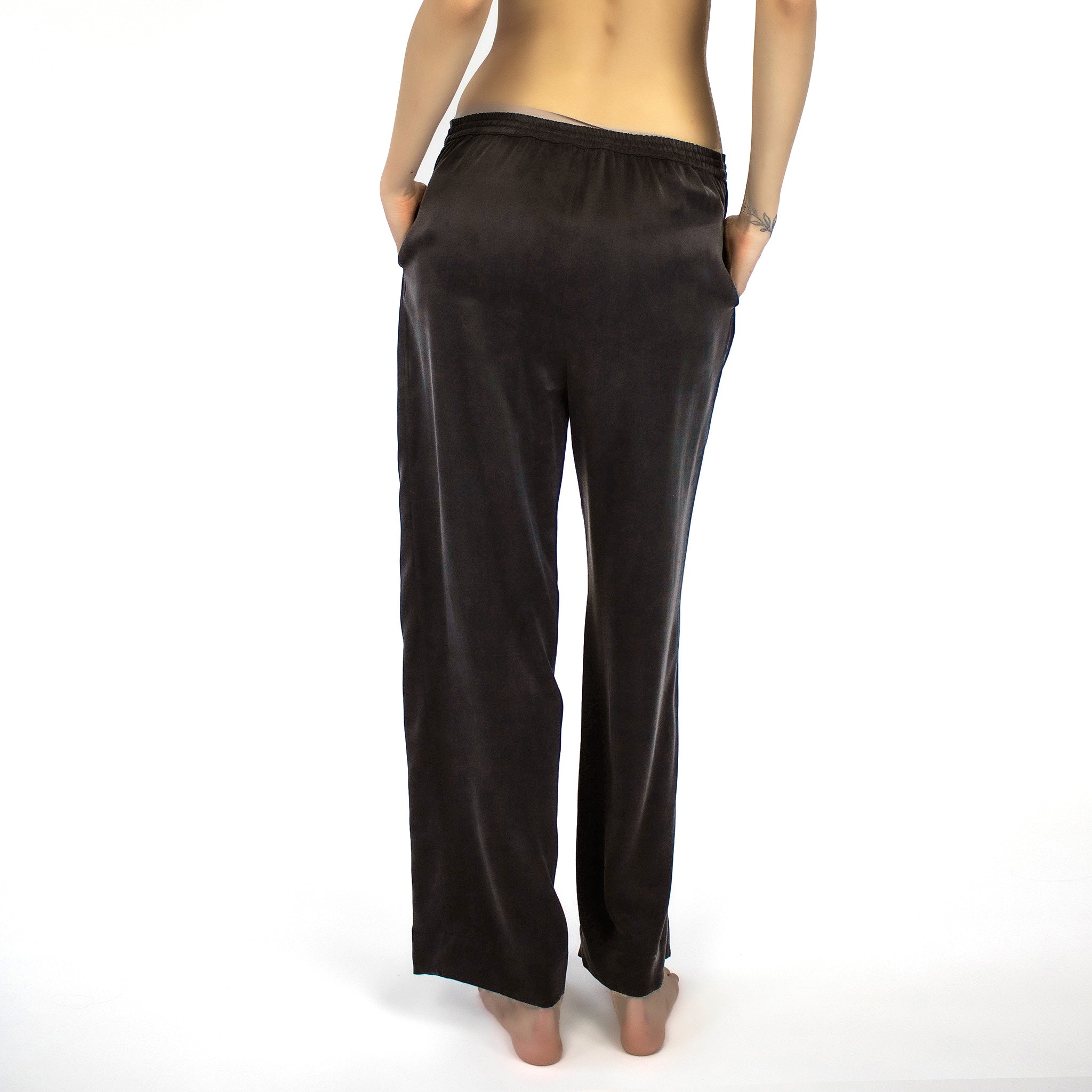 The Lady Pants are designed from 100% Mulberry Silk, featuring a relaxed fit with a drawstring waistband for maximum comfort and effortless elegance. Their fluid design ensures they drape beautifully, making them a go-to piece for lounging and casual outings.