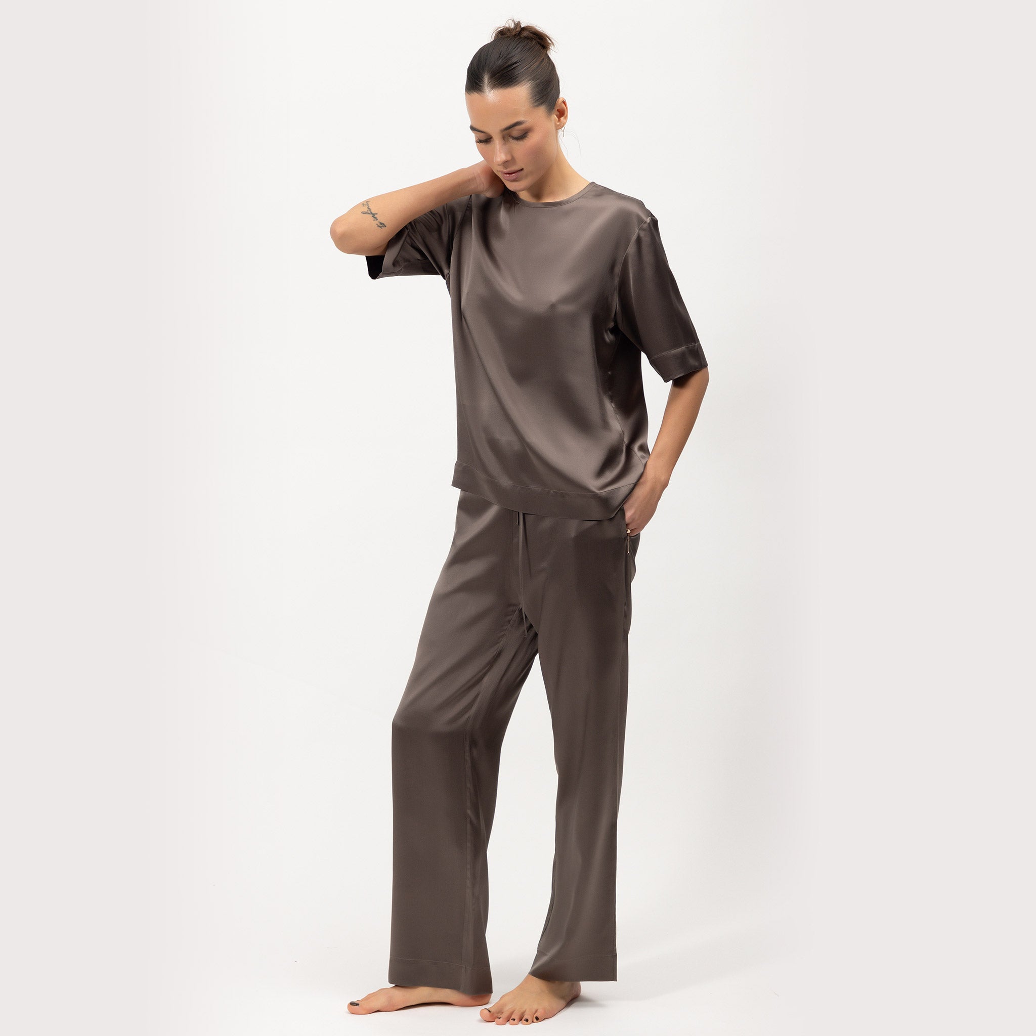The sophisticated Future Brown shade offers endless versatility. These pants bring an elevated feel to loungewear, perfect for those who value comfort and luxury.