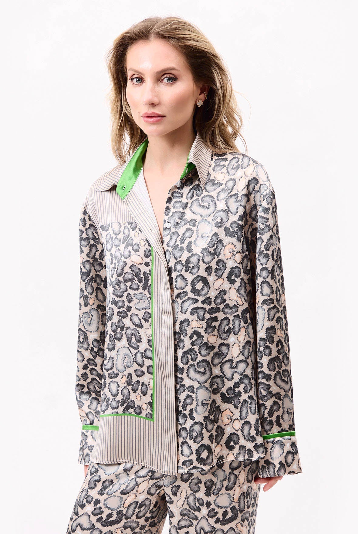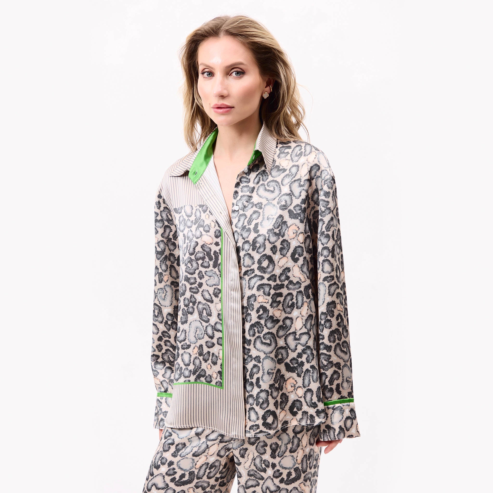 Crafted from 100% Mulberry Silk, the Animal Print Shirt brings modern structure to a classic silhouette. The fluid button-down fit blends ease with an edge. Naturally wrinkle-free, the silk keeps its clean finish with minimal effort.