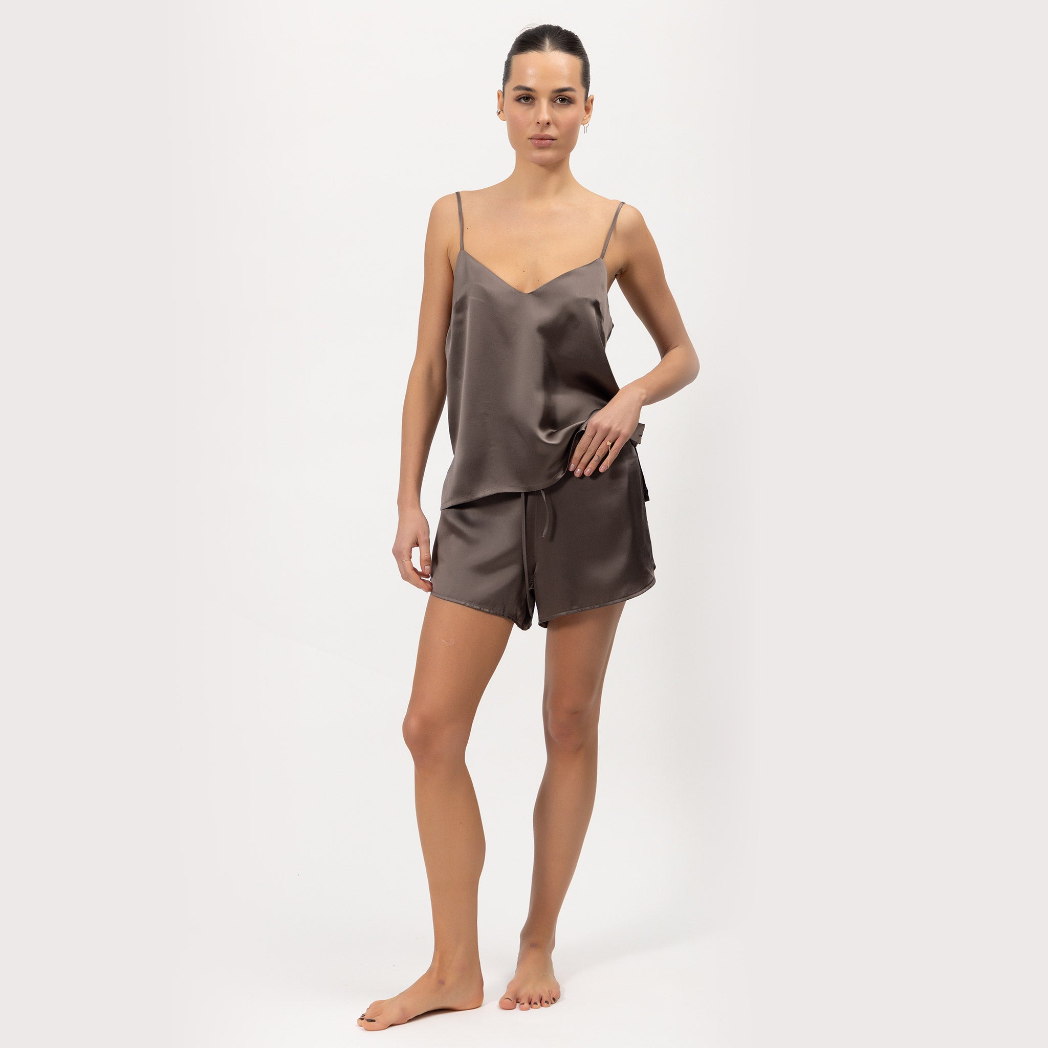 Complete the set with a matching shirt, camisole or robe for the ultimate loungewear ensemble.
