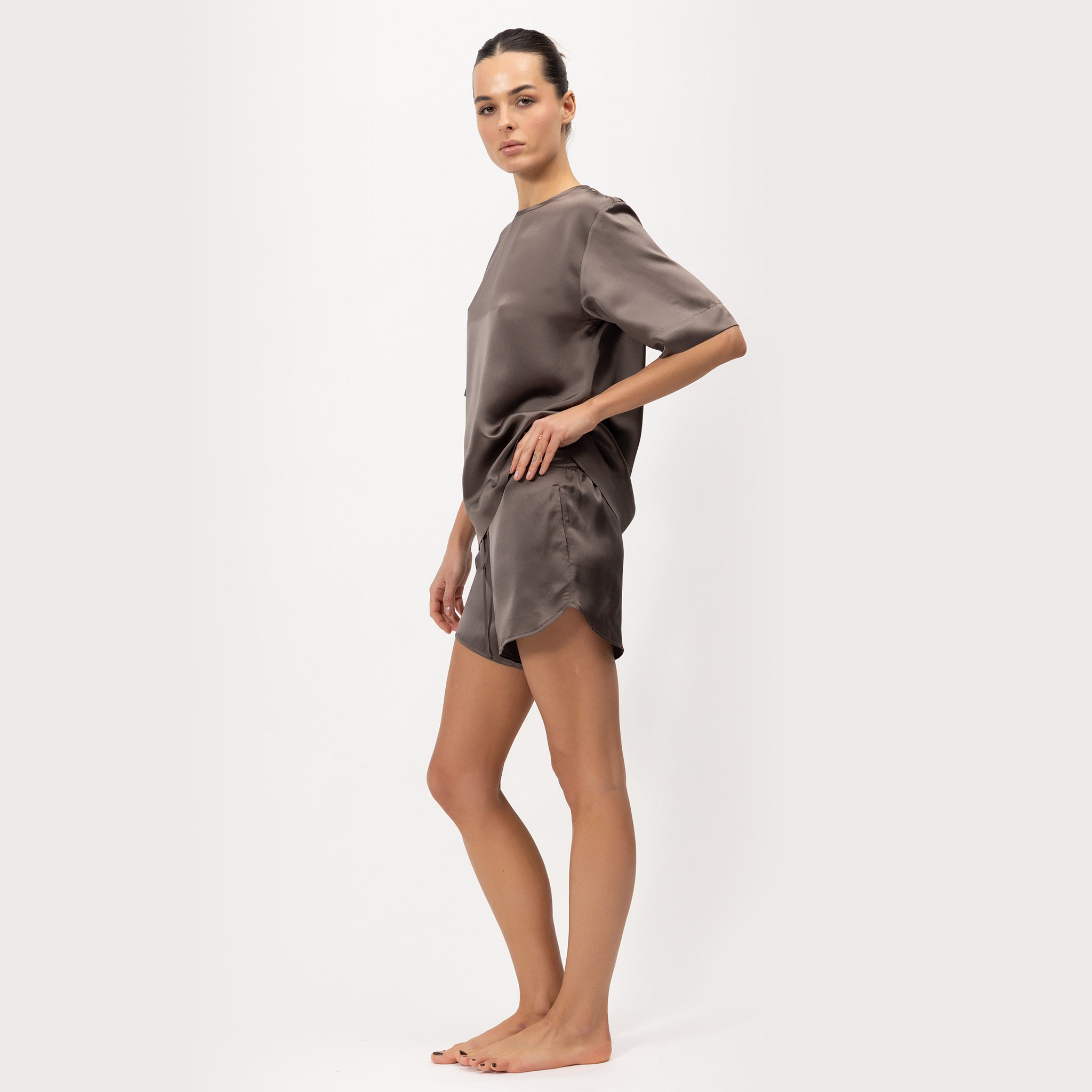 The Lady Shorts are designed from 100% Mulberry Silk to deliver premium comfort and an effortless fit. With a relaxed silhouette and an elasticated waistband, they offer ease of wear and sophistication.