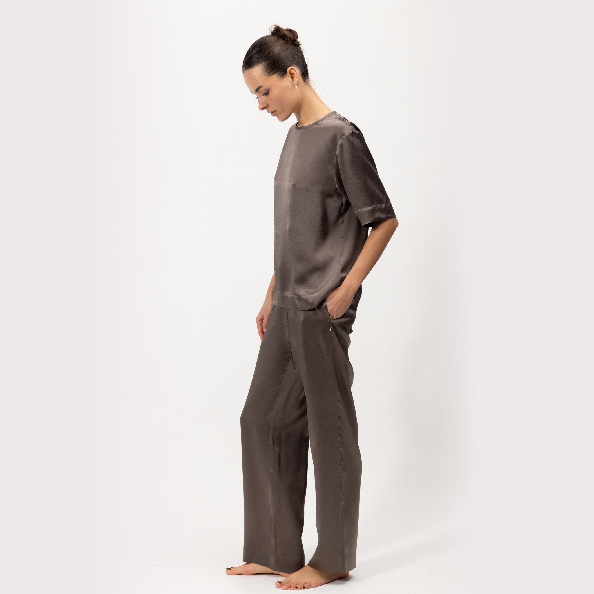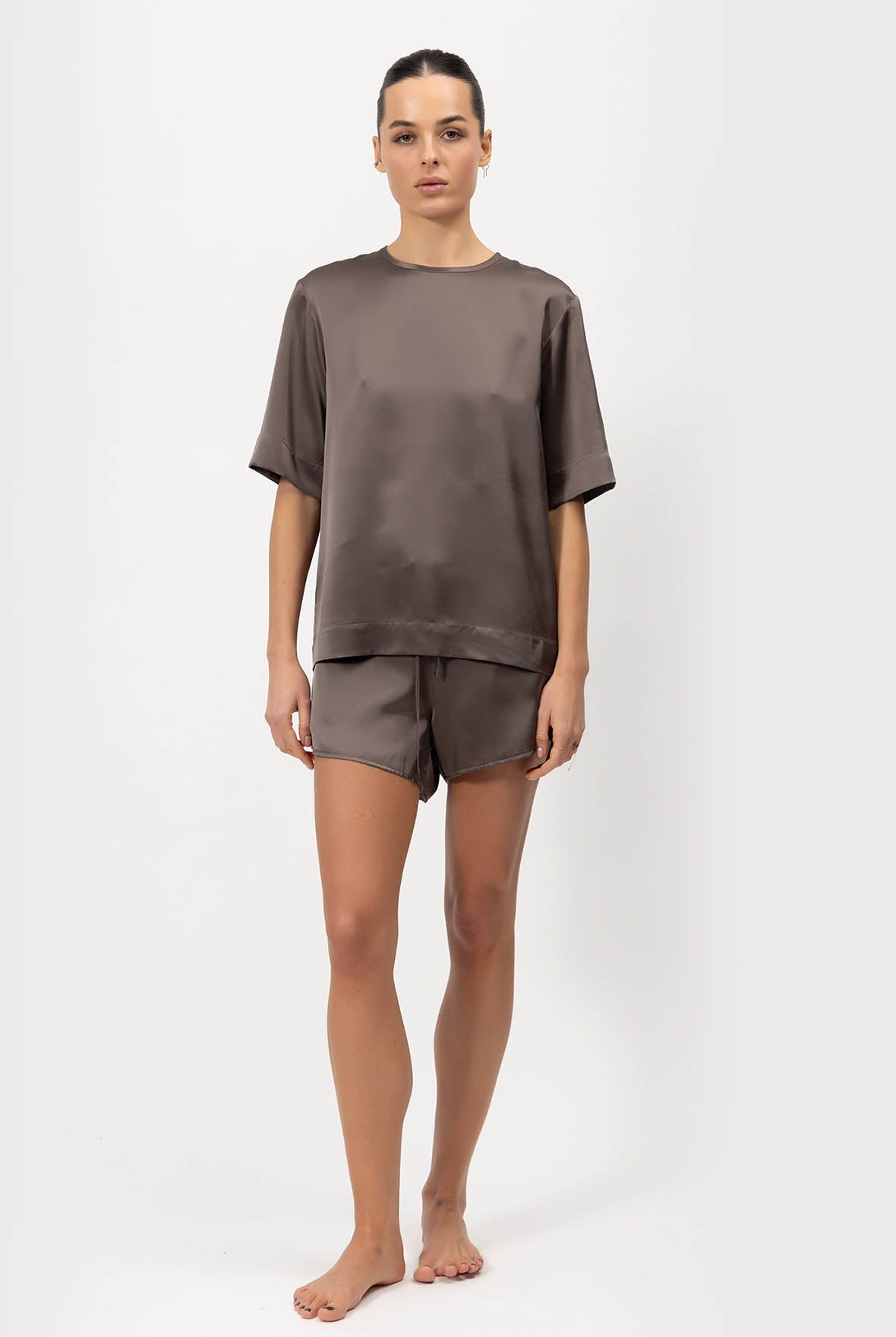 Balancing the richness of Future Brown with the modernity of a pinch gray, this tone adds timeless elegance, making it perfect for casual and elevated ensembles. Designed for ultimate comfort and style, this T-shirt transitions seamlessly from lounge to daytime wear.