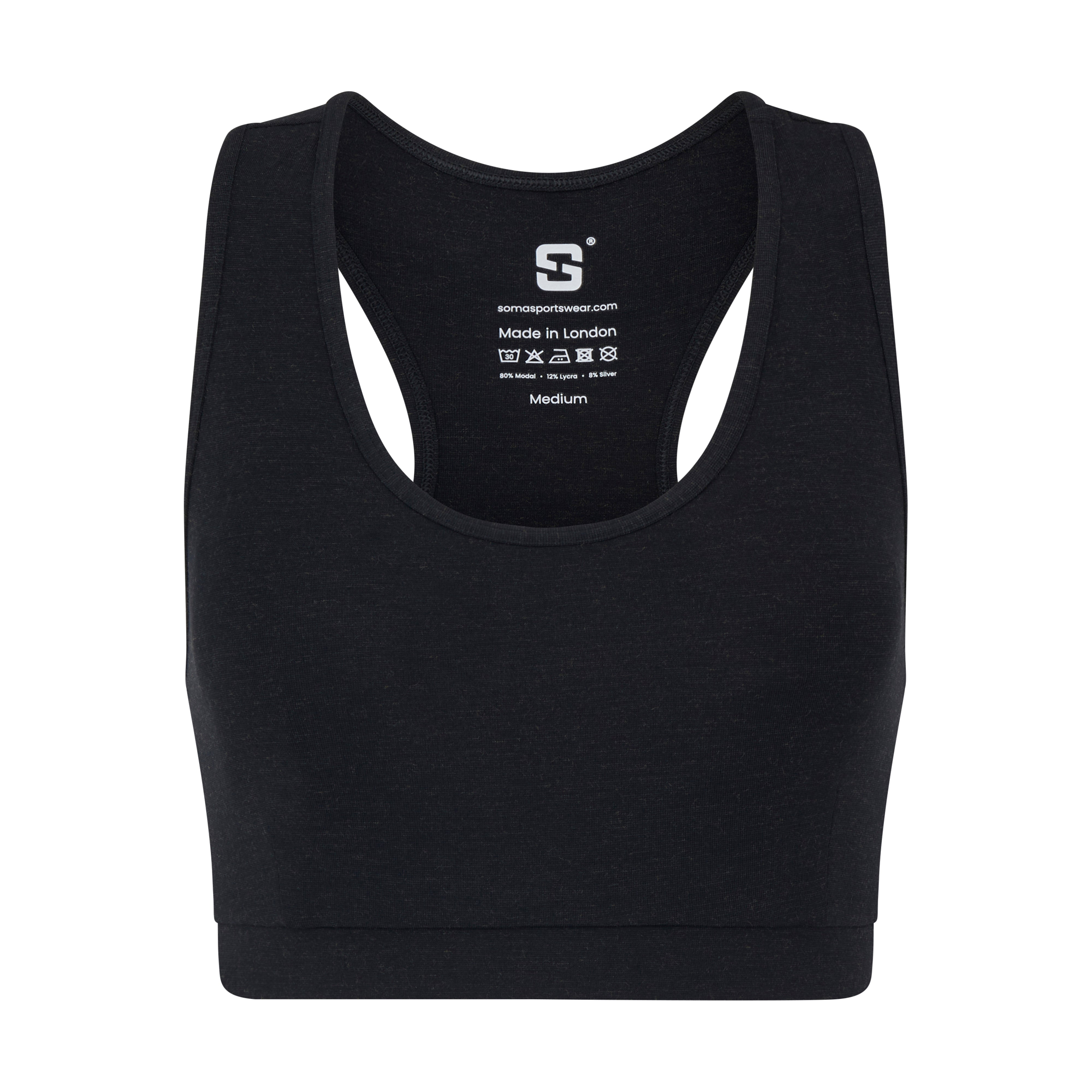 Sōma Sports Bra. 8% pure silver. High performance fabric. Versatile support for medium-impact activities. Flexibility to remove bra cups. A complete sports bra.