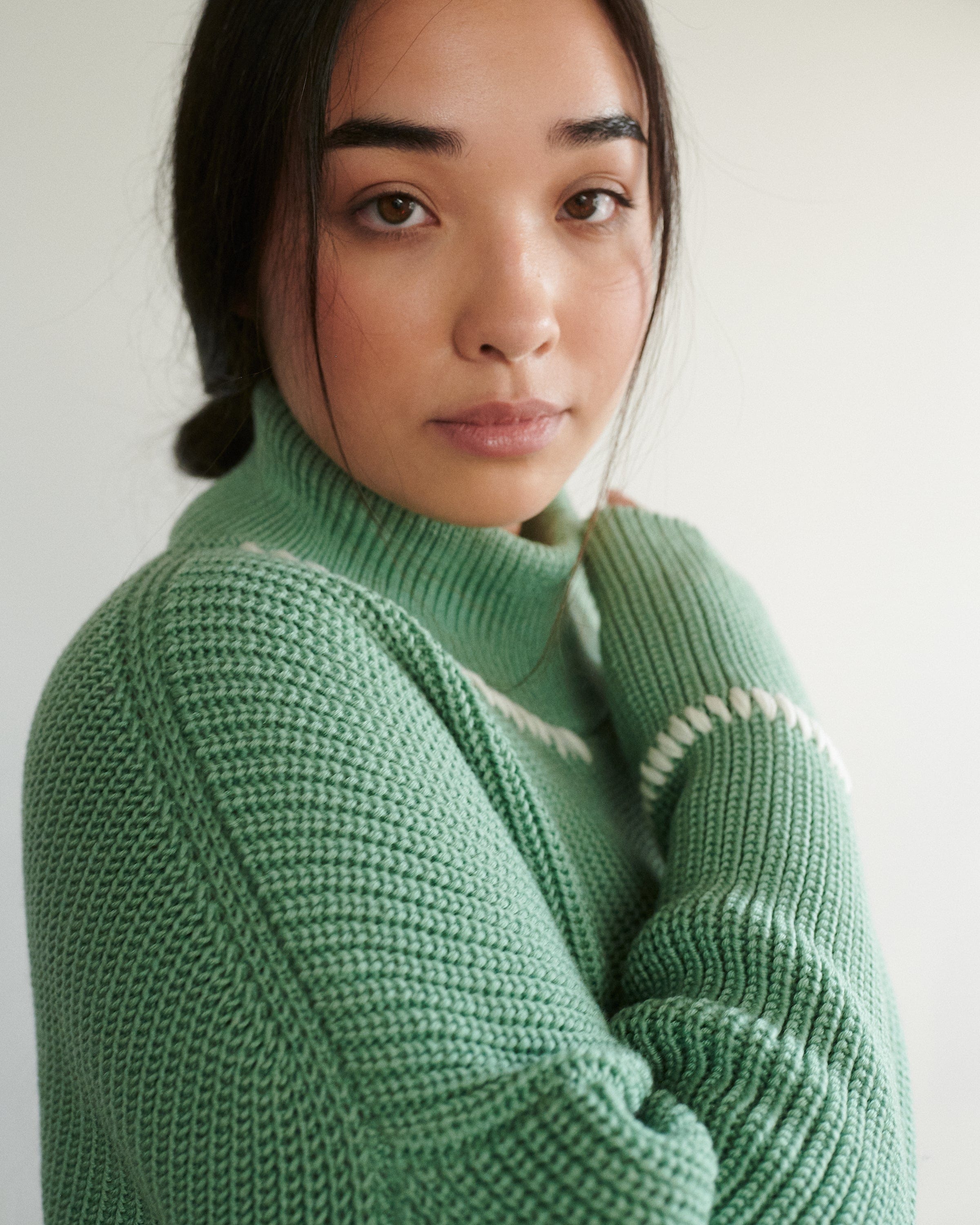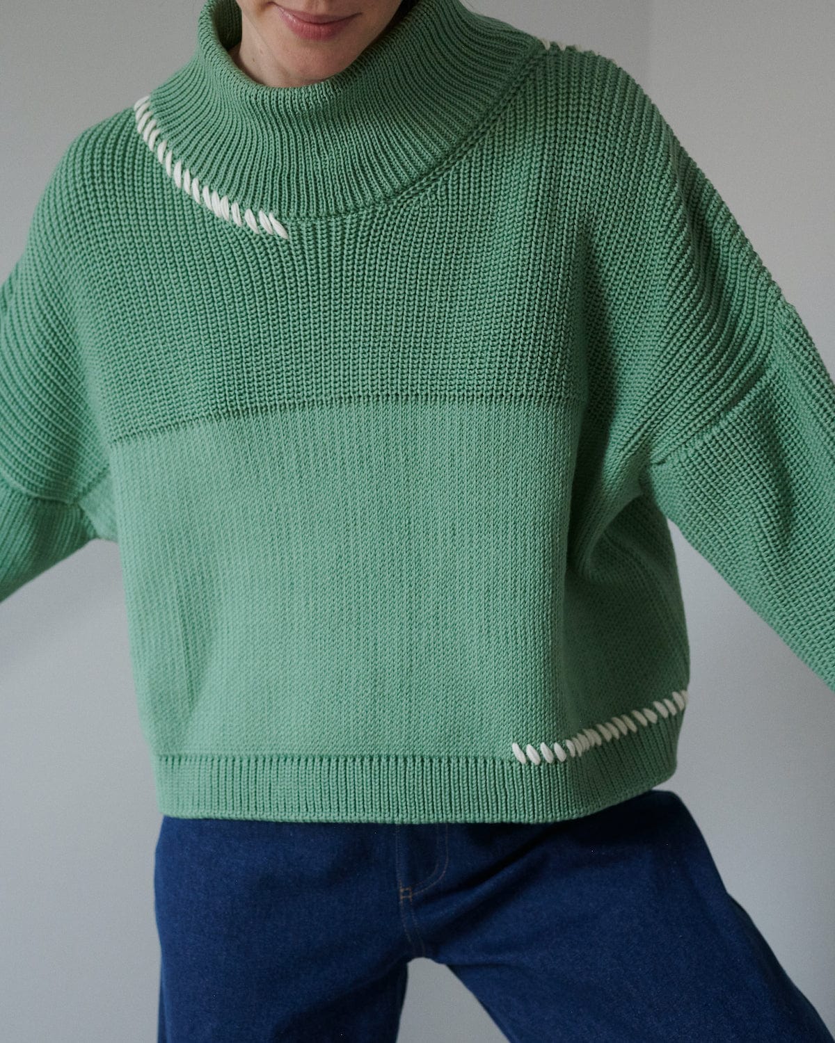 This cropped Merino wool turtleneck is our ode to "Šturmai," a serene fishermen's village within the Curonian Lagoon. Just like Šturmai itself, embodying coastal timelessness, the elevated design of the knit echoes the resilience of those who've sailed the Baltic waters for generations. Hand-embroidered motifs pay homage to the enduring tradition of the local fishermen's sweaters, with each stitch a testament to their artistry and endurance.