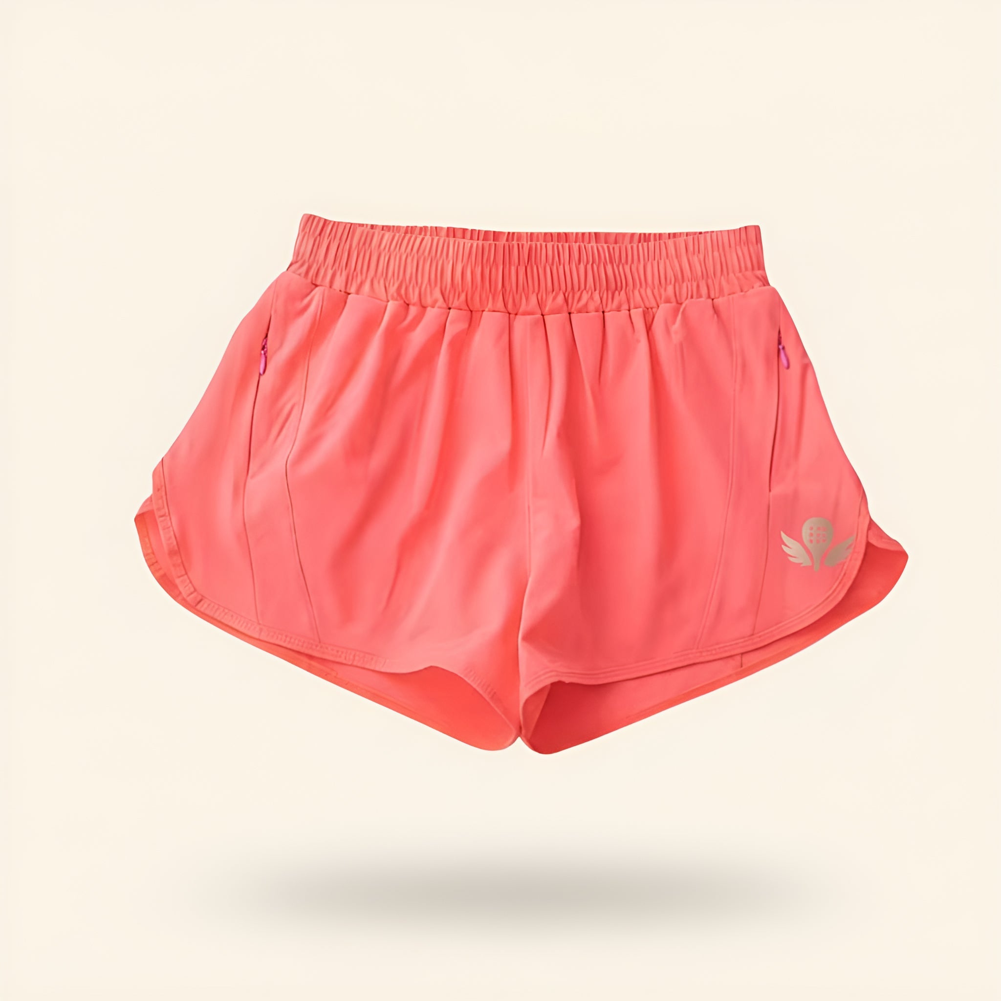 Cut from breathable performance fabric in a juicy, sorbet-pink hue, they feature a flattering A-line shape and built-in inner shorts for coverage that keeps up with every serve, sprint, and side step and holds a few padel balls too.