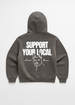 Our Support Your Local Animal Rescue Hoodie features a charcoal black garment dye with a true to size fit and midweight feel for everyday wear - all year long. Designed with our OG Logo across the front center chest and a larger back graphic inspired by our rescue dog Lucy.