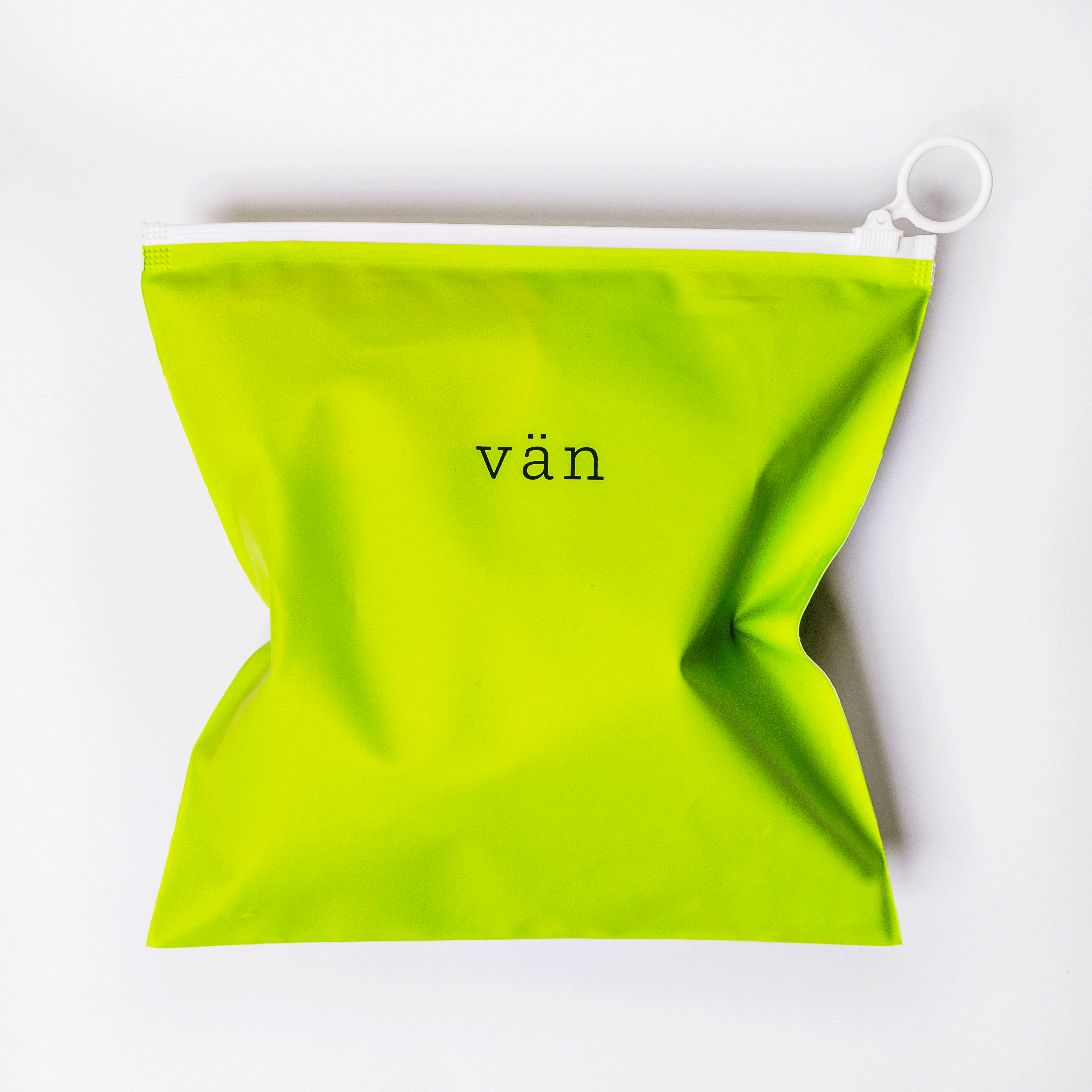 It comes with the vän bag. The coolest shade of neon yellow for this practical beach pouch, perfect to store your wet bikini after a lovely day at the beach.