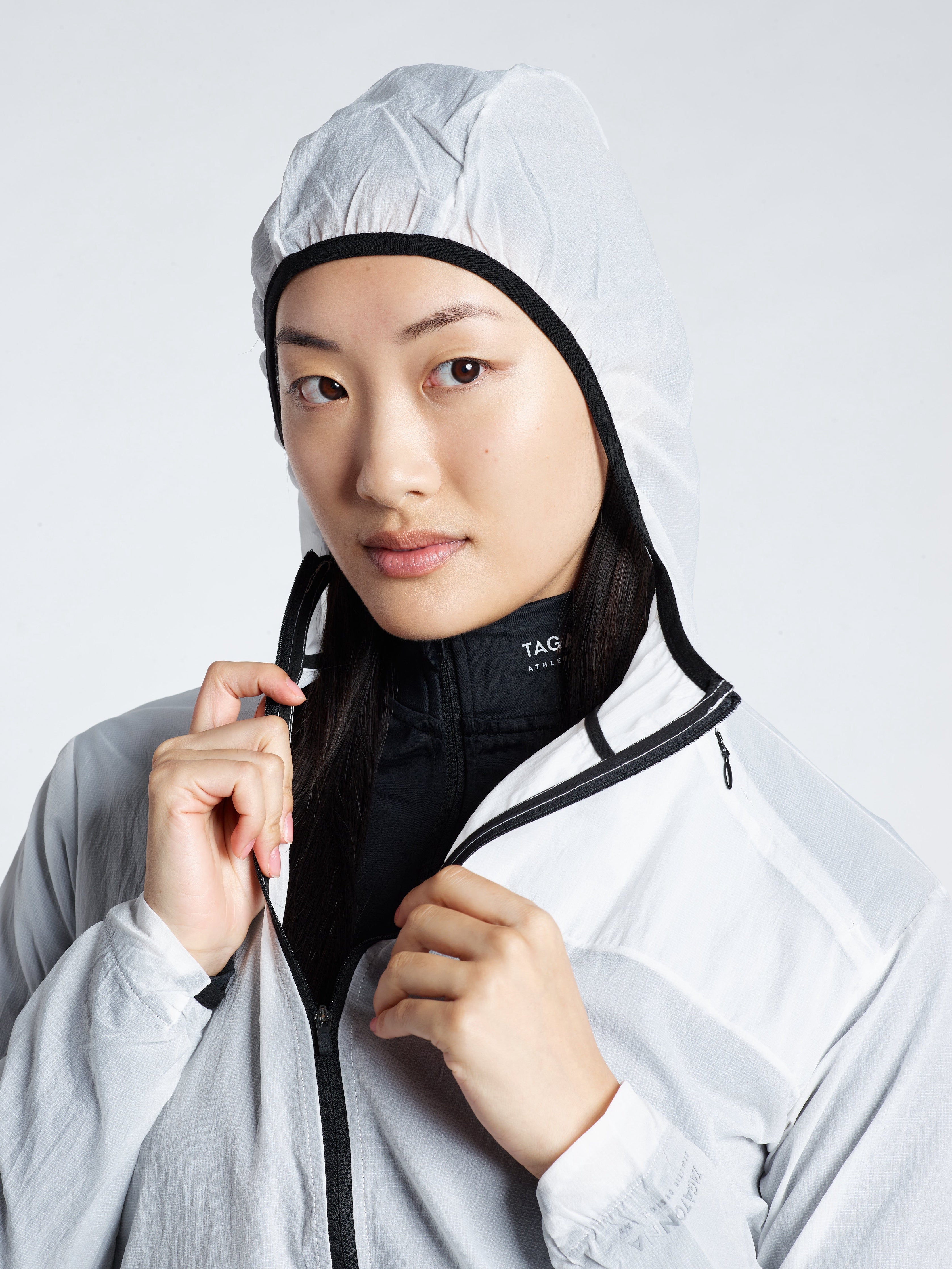 Designed for performance, this lightweight running jacket blends refined style with technical precision. Its breathable, weather-resistant fabric ensures comfort in any condition and a fit that allows unrestricted movement. A sleek, full-length zip offers seamless layering and temperature control, and the subtly reflective TAGATONNA Athletic Design Lab ™ sleeve logo enhances visibility in low light, balancing safety with understated elegance.