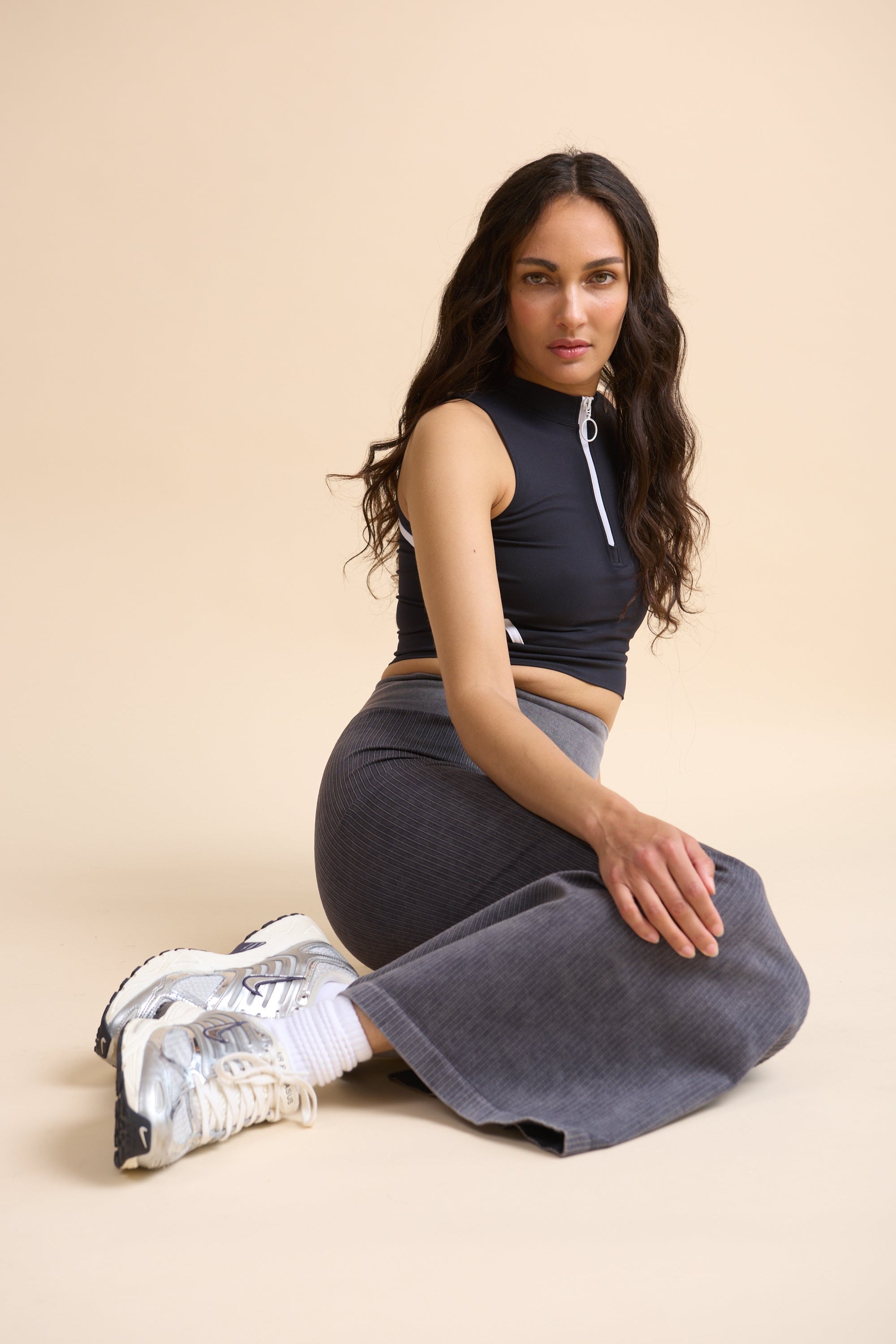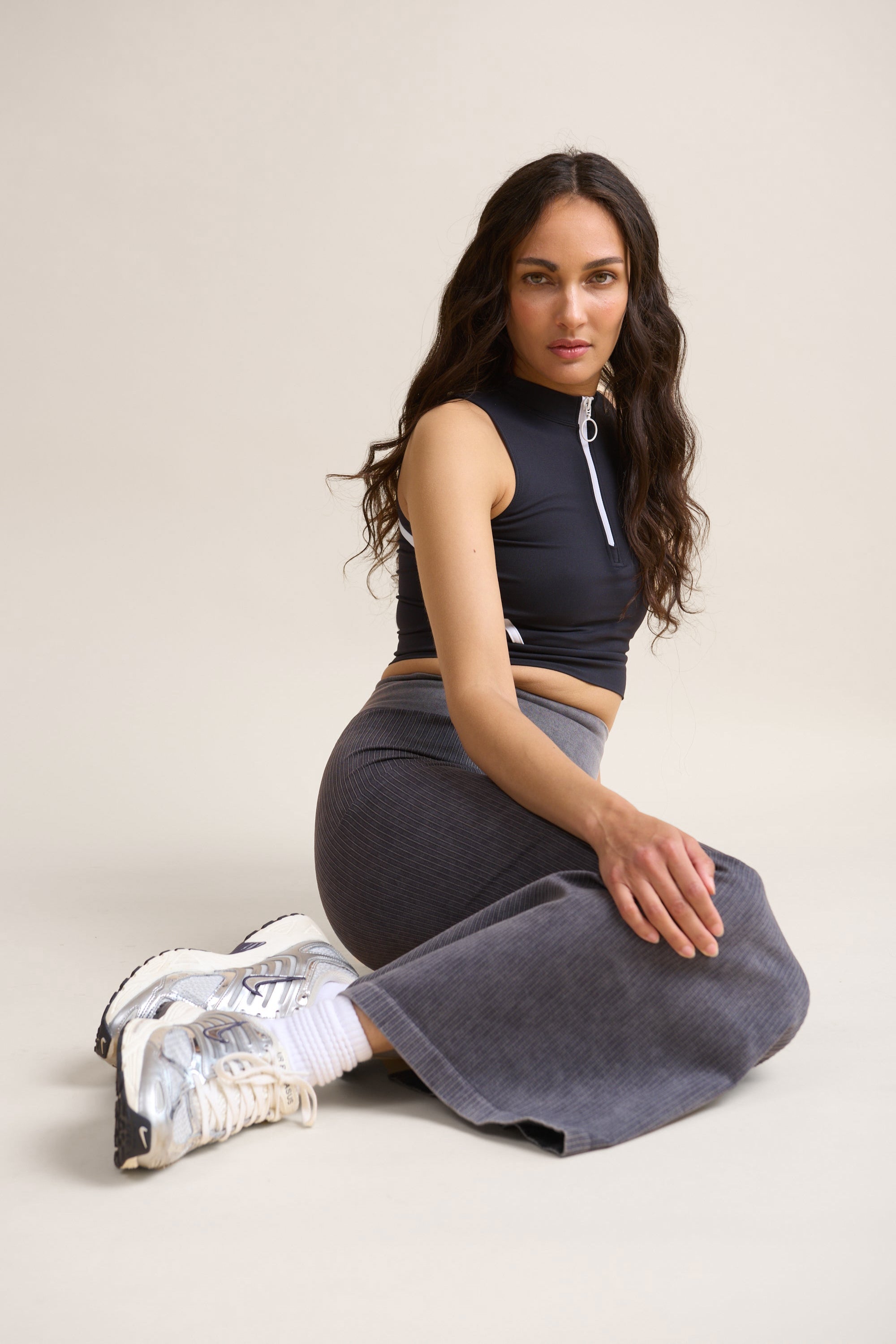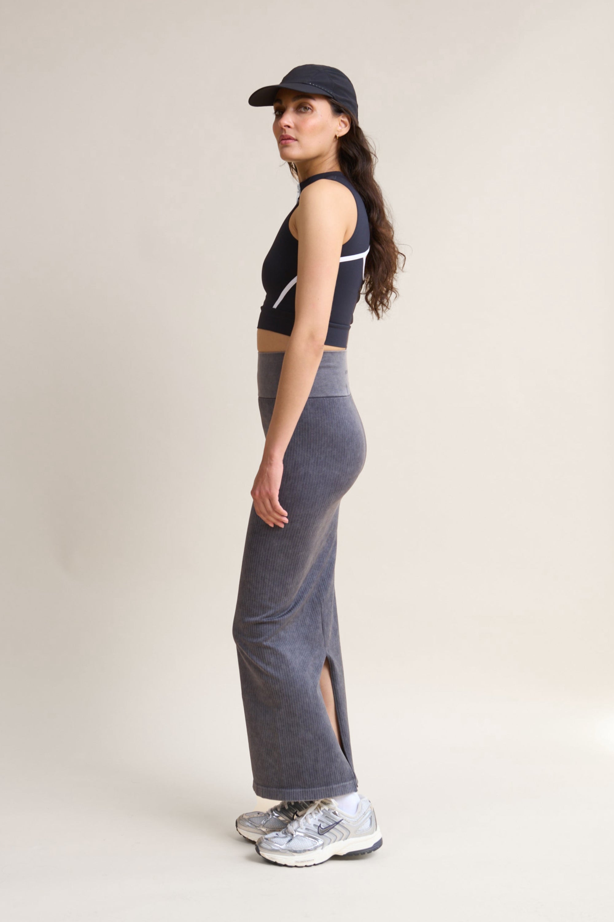 A sleek staple with a sculpting fit, the Takeover Ribbed Maxi Skirt features a high-waisted silhouette and rib pin detailing for a flattering, contoured look. The acid wash finish adds a modern, lived-in feel, while the back slit enhances movement and style. Designed to complement every curve, it’s the perfect blend of comfort and sophistication.