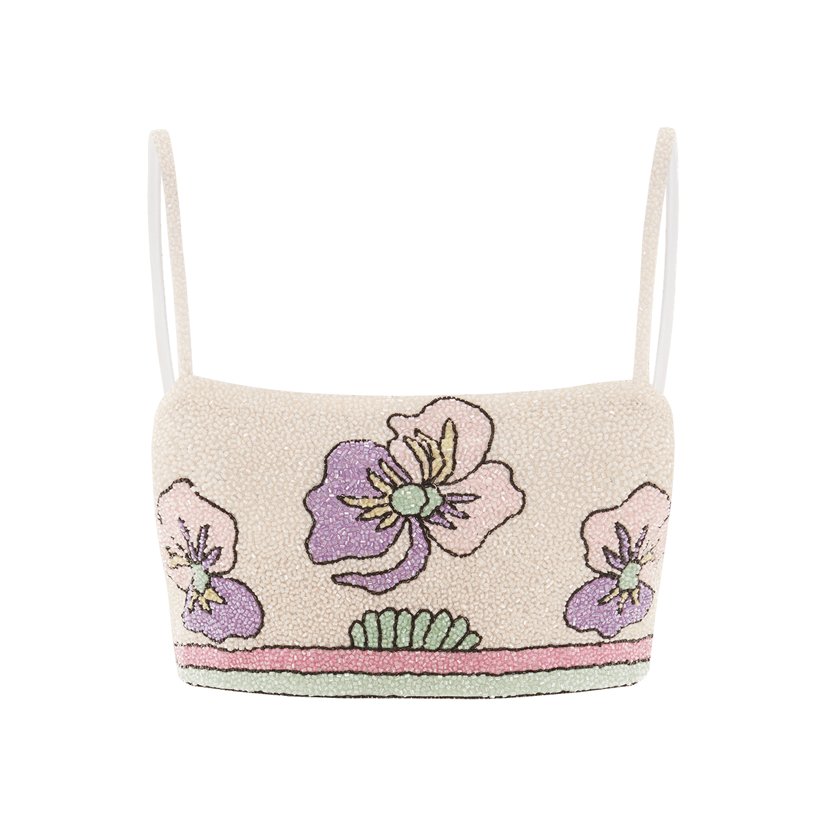 Elevate your summer style with the Tallulah Crystal Co-Ord Pull On Top. This luxury crop top is hand-embroidered with crystals and adorned with sea life inspired motifs, making it a true statement piece for beach parties, resort wear, or holiday nights out. Crafted from eco-friendly power mesh, this sustainable fashion top is handmade by artisan embroiderers. Perfect to pair with skirts or shorts for an Instagram-ready summer look.