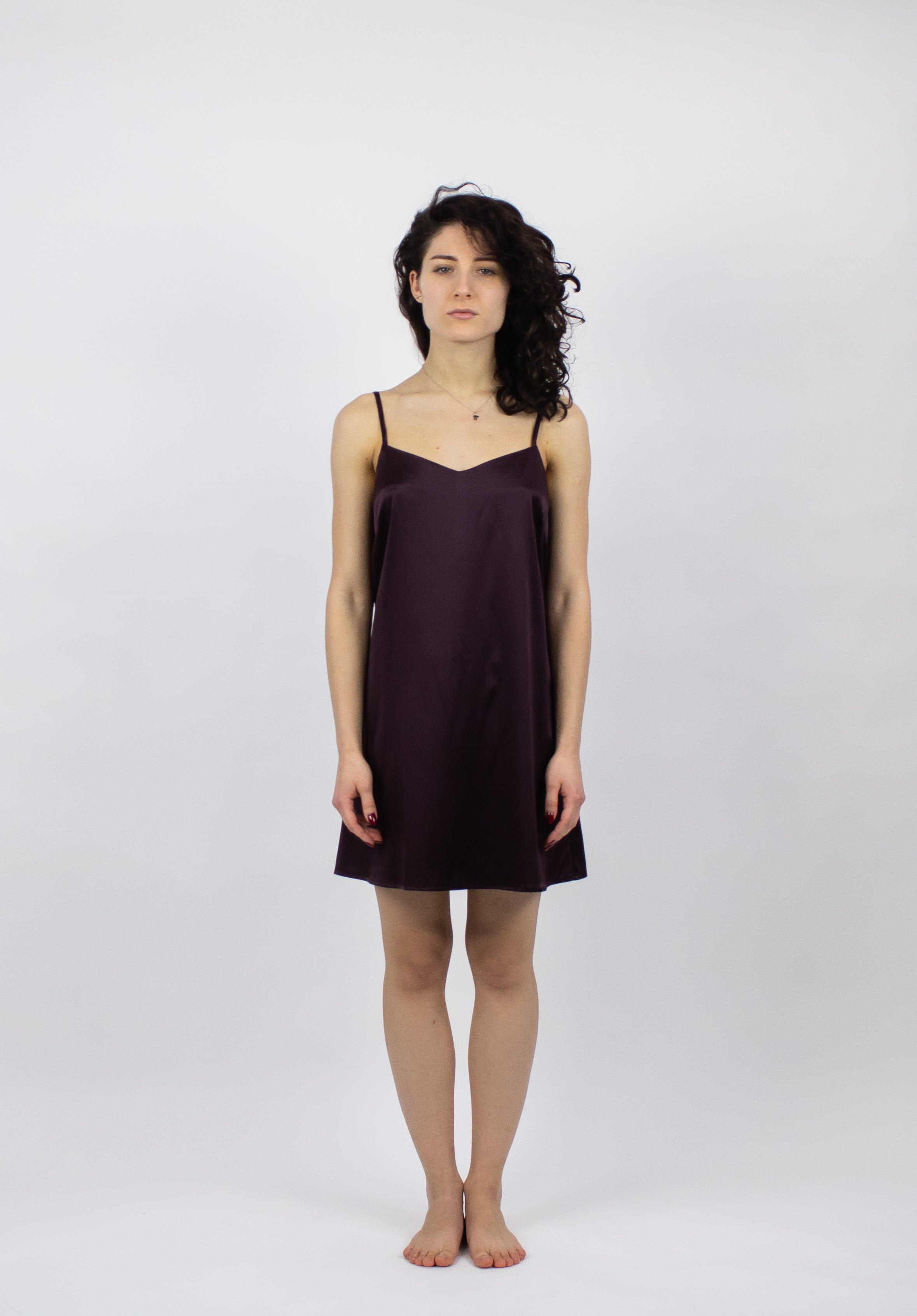 The Lady chemise is cut from 19 momme Mulberry silk in a charming fudge hue that perfectly emphasises the figure and falls to a mini length.
