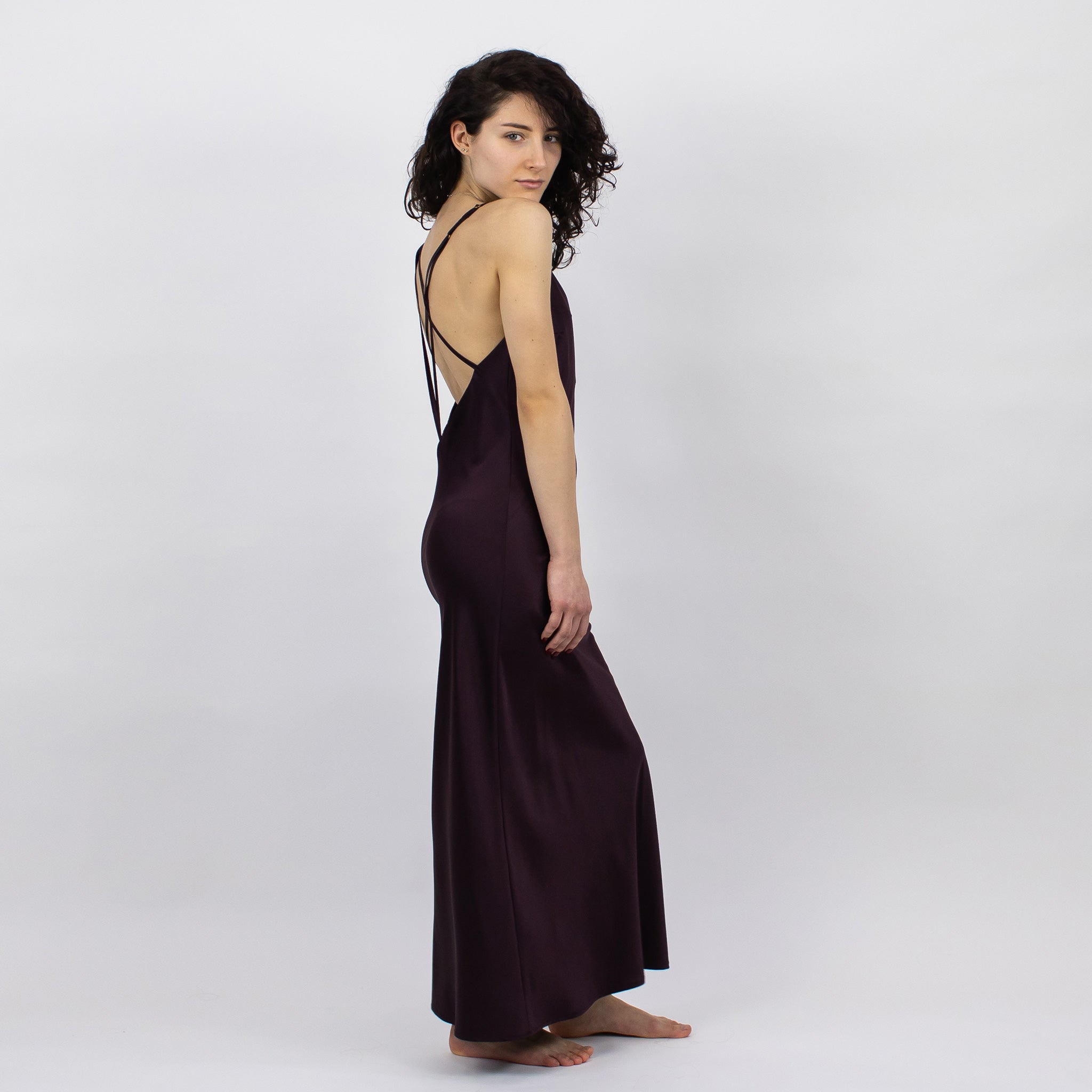 The maxi dress can be worn both as lingerie and fashion apparel. The bold solid colour of the chocolate fudge dessert looks vivid and sensual.