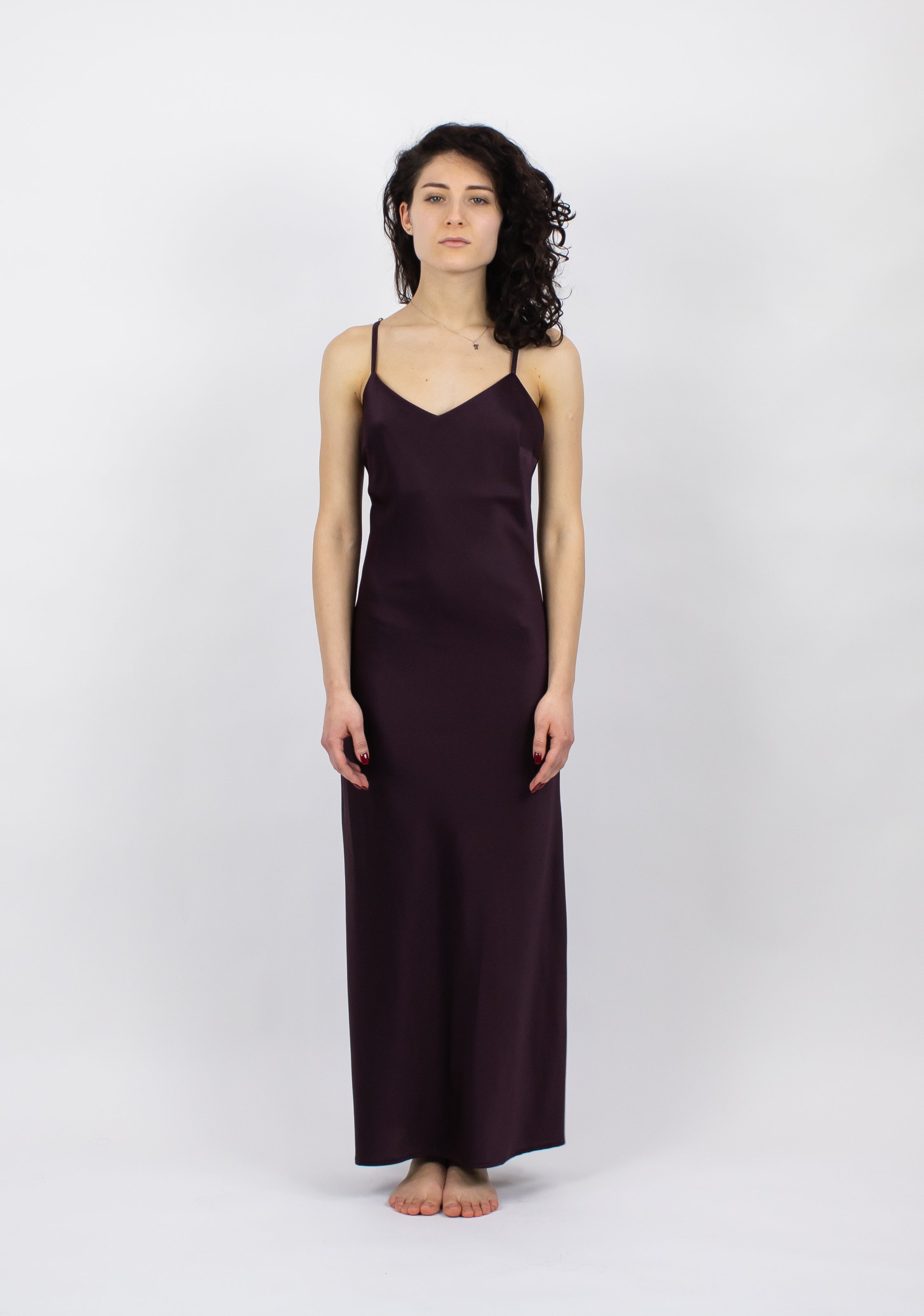 The Lady elegant maxi dress gently skims your figure. The piece is cut from 19 momme Mulberry silk that glistens and has adjustable spaghetti straps.