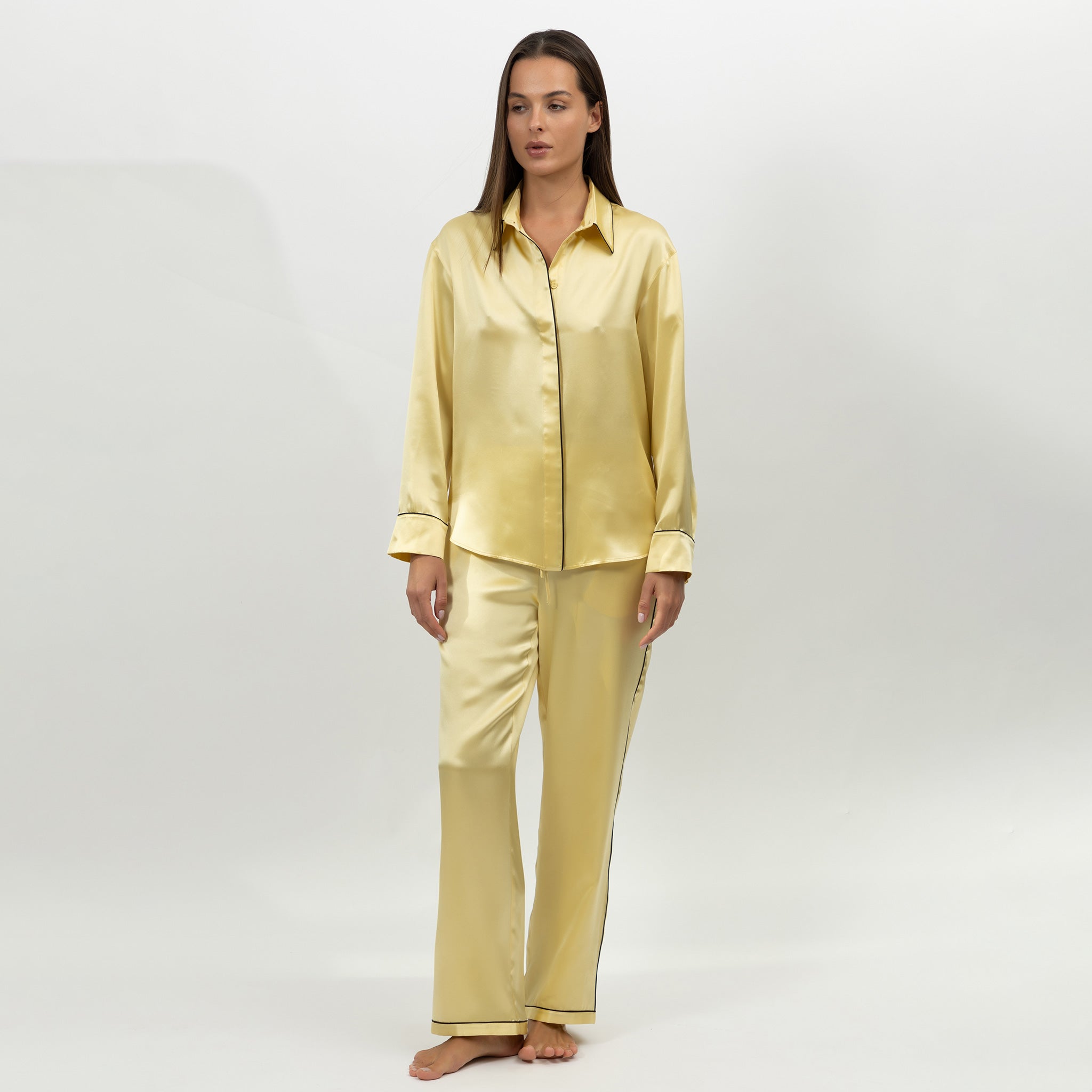 Rendered in Panna Cotta with contrast piping in Ground Coffee, this piece blends clean lines with a subtle nod to heritage pyjama styling — versatile, intentional, and elegant. Ideal for sun-soaked afternoons or warm-weather layering.