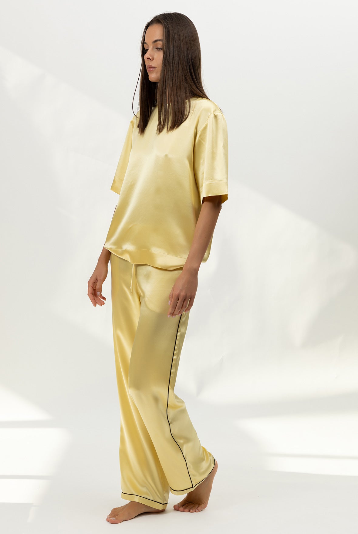 The Lady Pants are tailored from pure Mulberry Silk with a straight, relaxed leg and an elastic waistband for a polished, easy fit.