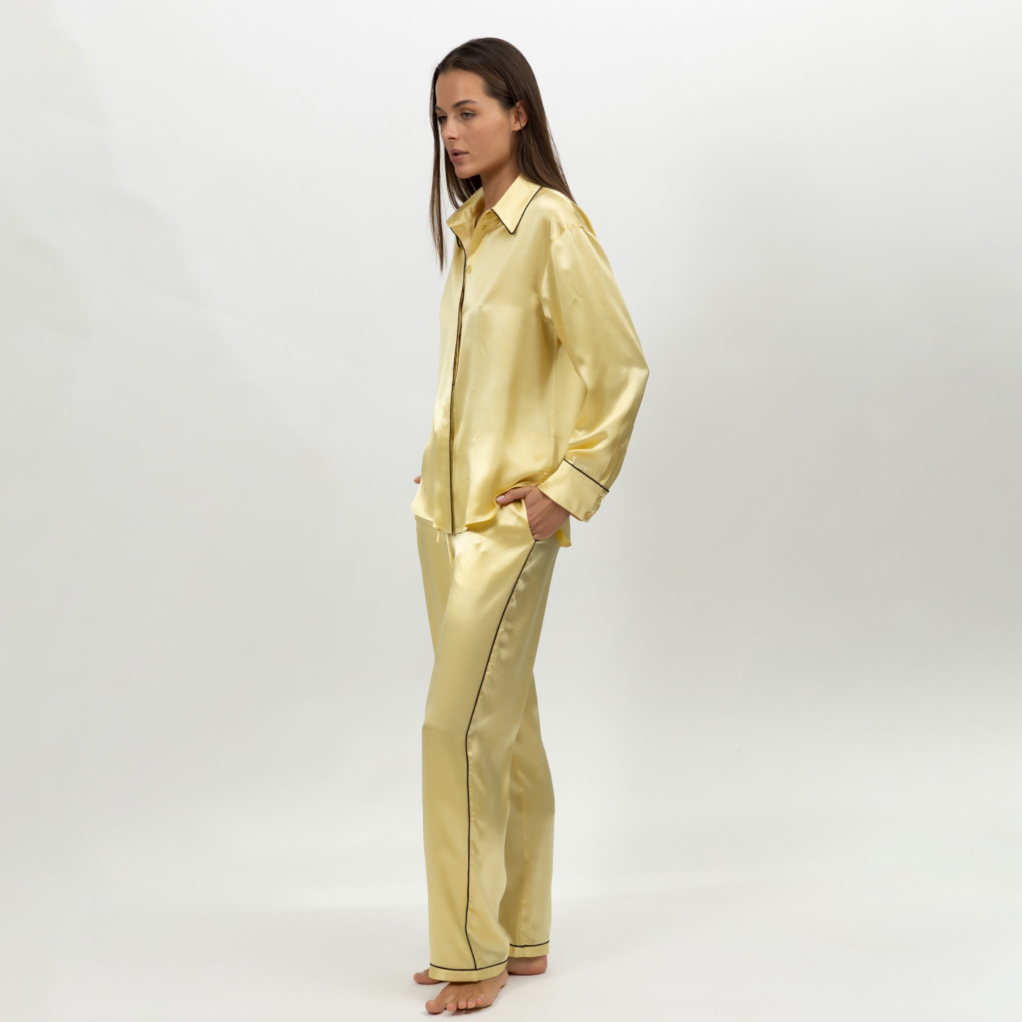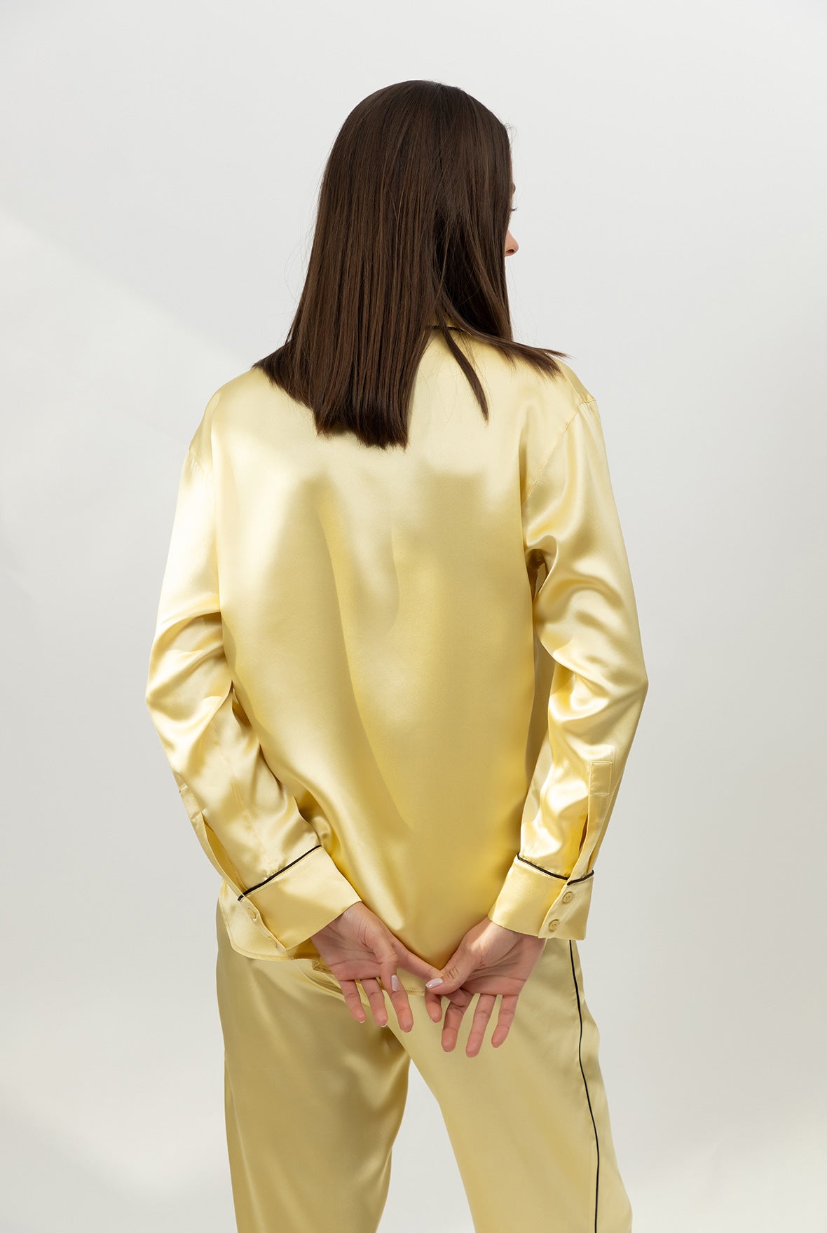 The Lady Shirt, made from 100% Mulberry Silk, is a classic reimagined with modern elegance. The button-down silhouette with a smooth finish offers structure and fluidity, making it versatile for any occasion.