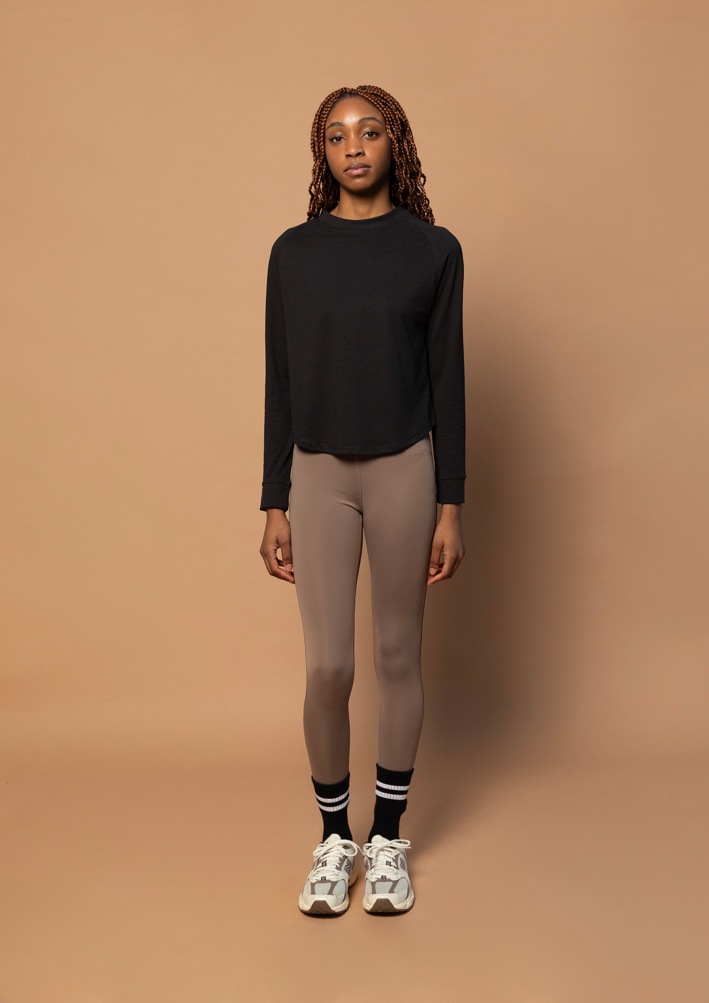 Our first long-sleeved top is here. With a flattering open, cross-over back and cuffed sleeves, this will be your new favourite workout top this winter. Pair with our Cappuccino leggings to complete the look, or with your favourite pair of jeans.