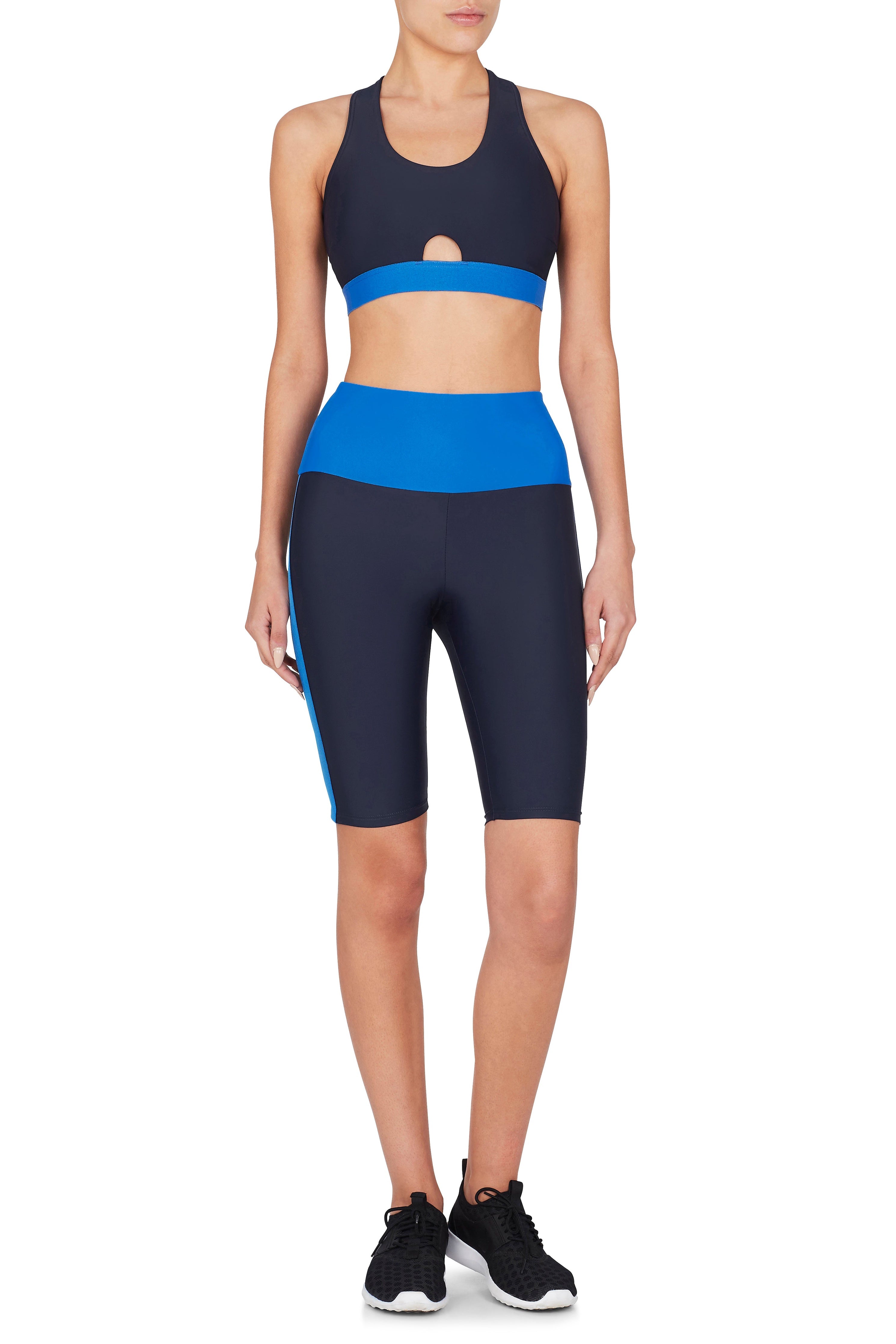 The ‘Oxygen’ shorts finish above the knee featuring a core stability high waist with elastic on both sides which allows compression for ultimate comfort. The colour blocked design flatters the form of the body.