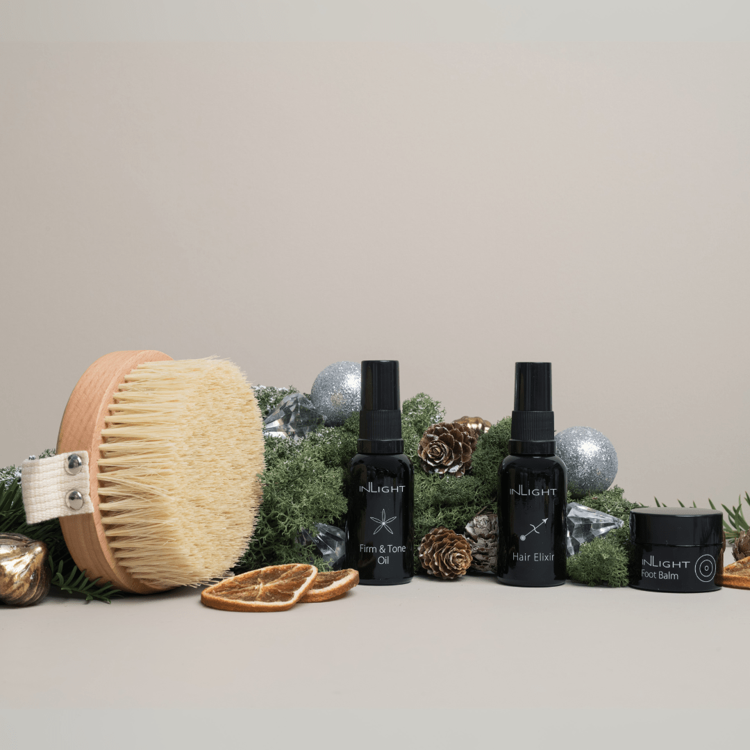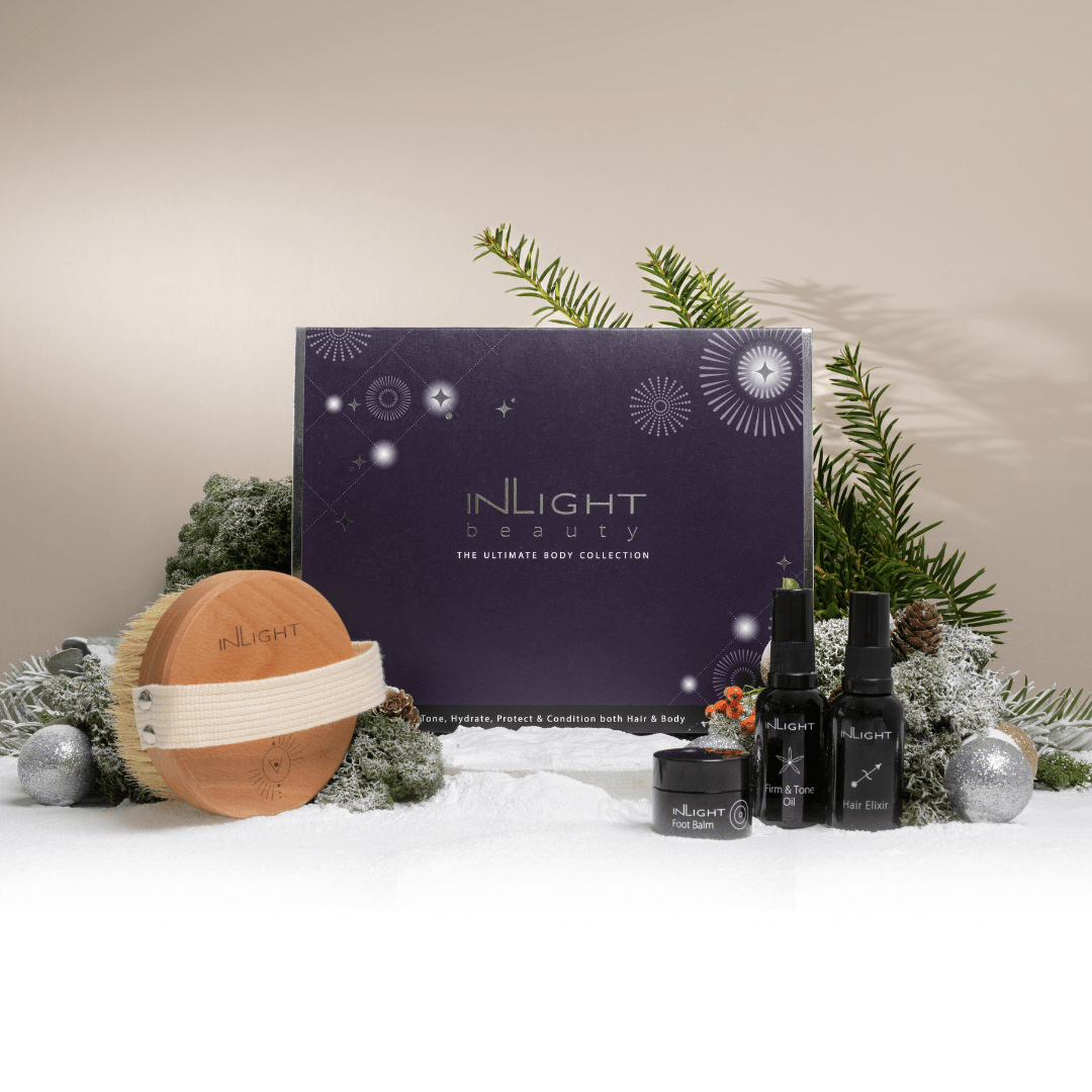A complete head-to-toe ritual of self-care. This four-step collection brings together our most cherished favourites, from the Firm & Tone Body Oil to a luxurious Hair Elixir, soothing Foot Balm, and our natural fibre Body Brush. Each product uses our signature scientific approach with potent organic ingredients to tone, hydrate, protect, and revitalise your hair and body. This set delivers a truly transformative and rejuvenating experience.