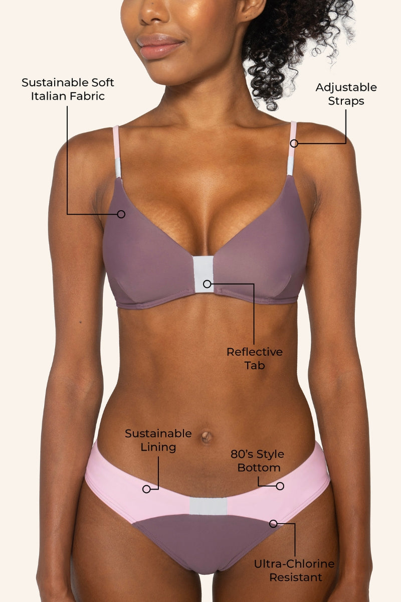 Pink Purple Low Rise 80s Rise Bikini Bottom