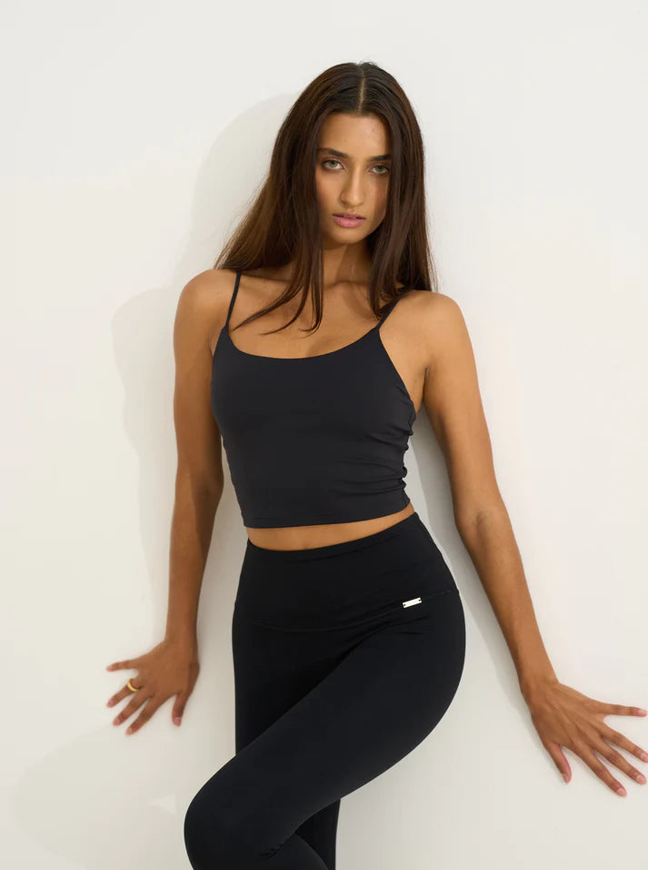 The Ulca Crop Top is not just a top but also a bra. It’s made with our butter soft performance fabric and has a classic neckline, cropped silhouette, and spaghetti straps.