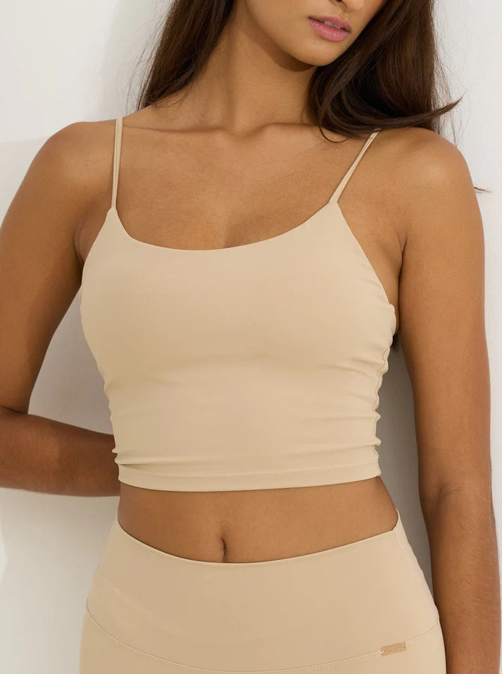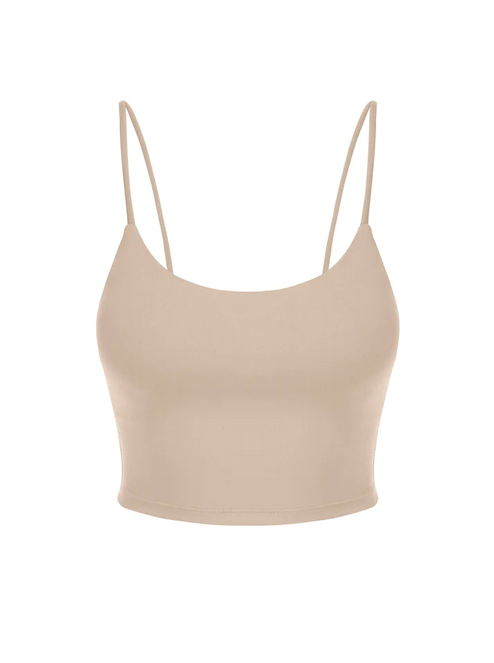 The Ulca Crop Top is not just a top but also a bra. It’s made with our butter soft performance fabric and has a classic neckline, cropped silhouette, and spaghetti straps.