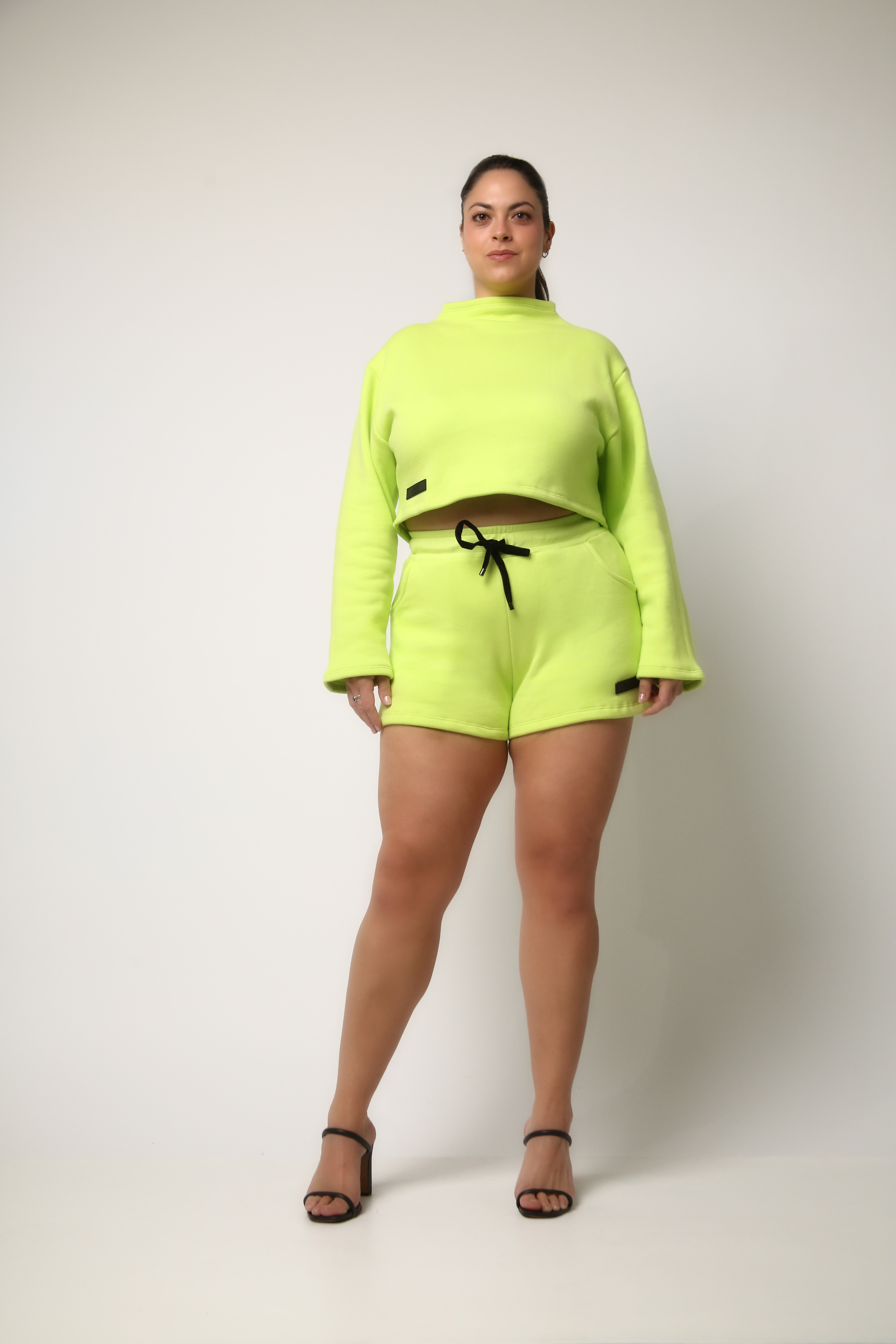 An elevated essential to your wardrobe. Lounge all day in this flattering short. Pair it with the matching crop sweatshirt for the perfect and effortless lounge look, off-shift.