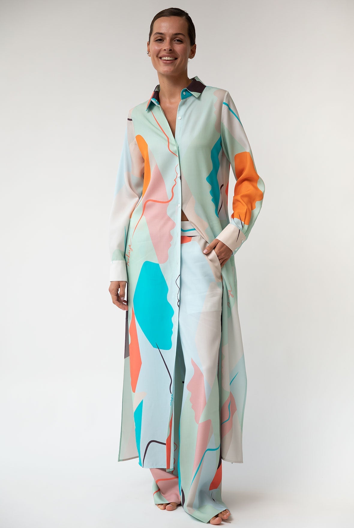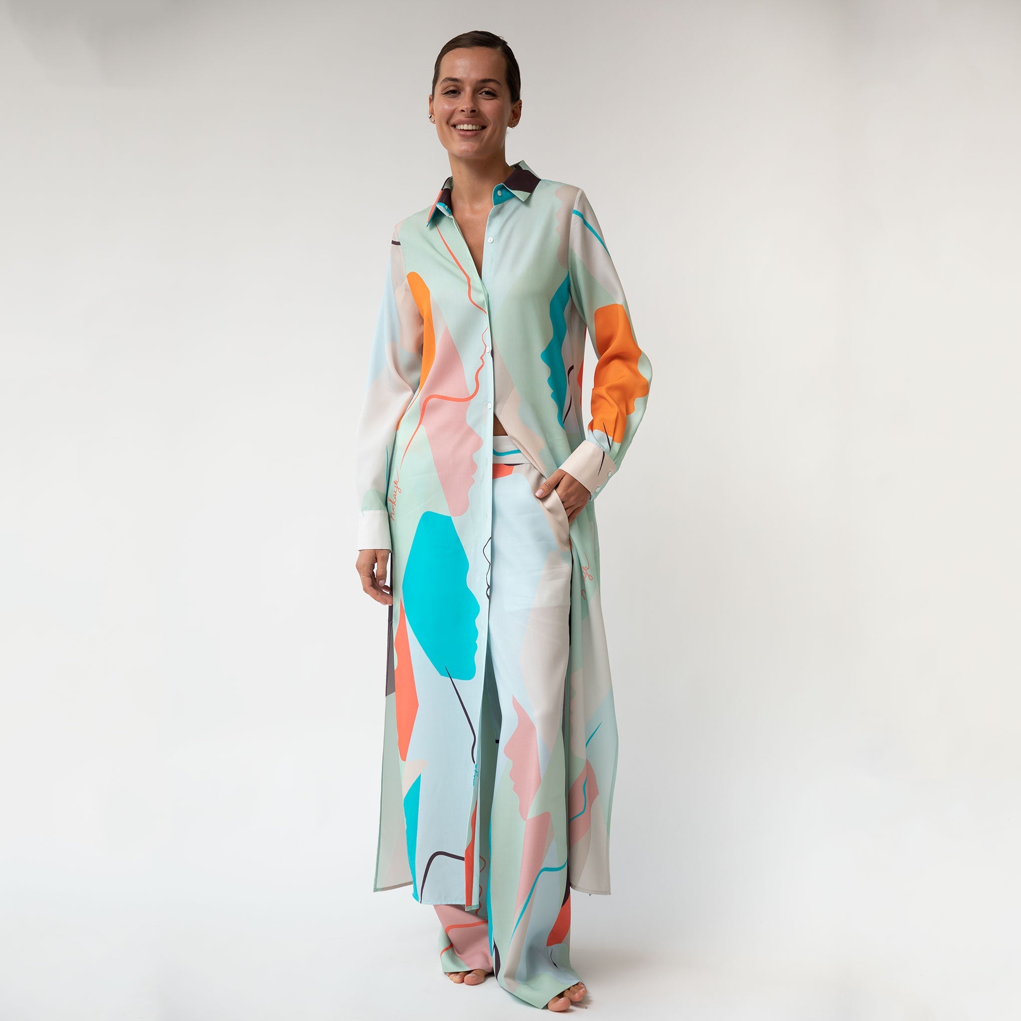 Style Tip: For an elegant look, pair pants with a matching shirt or wear them with the Long Shirt Dress.