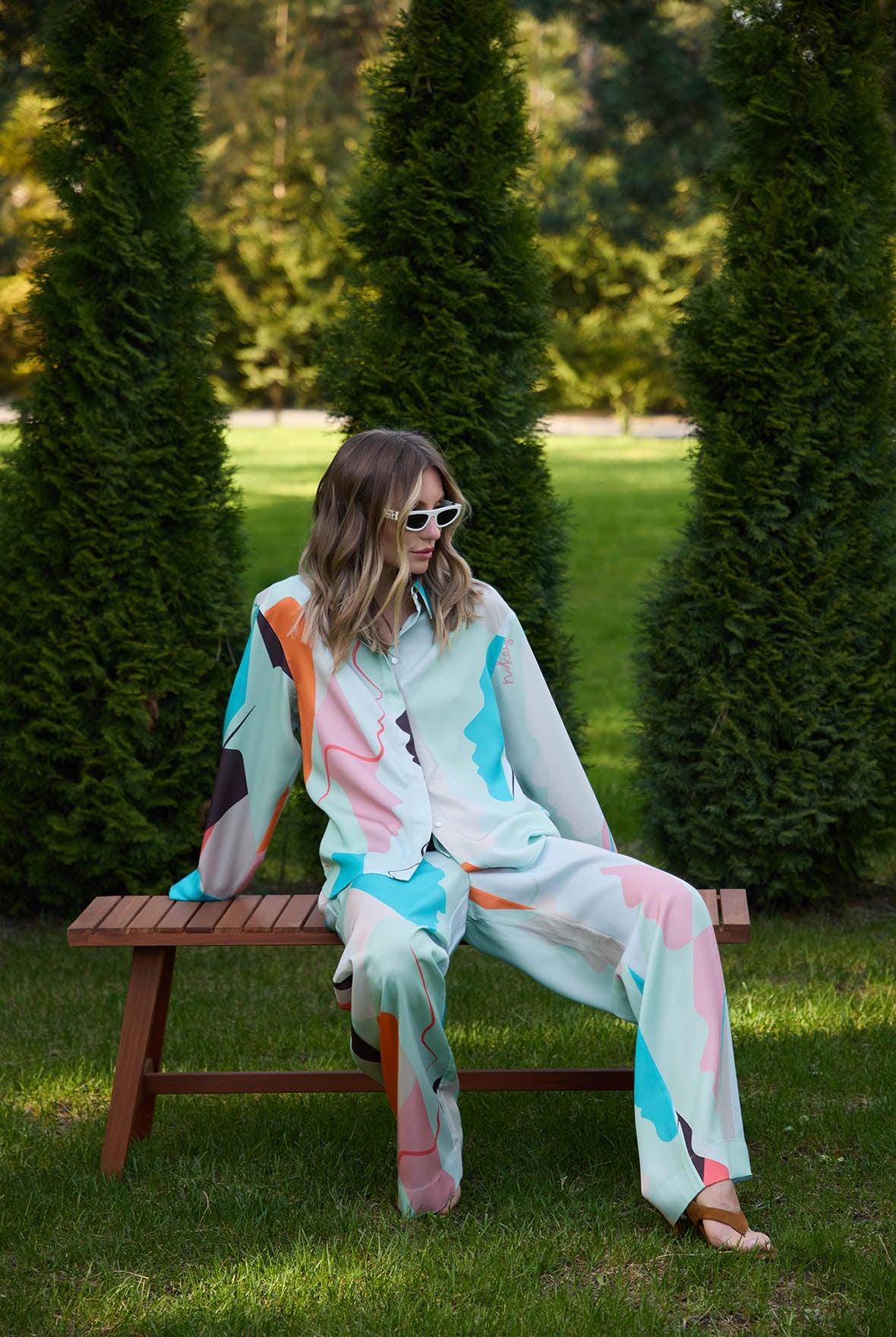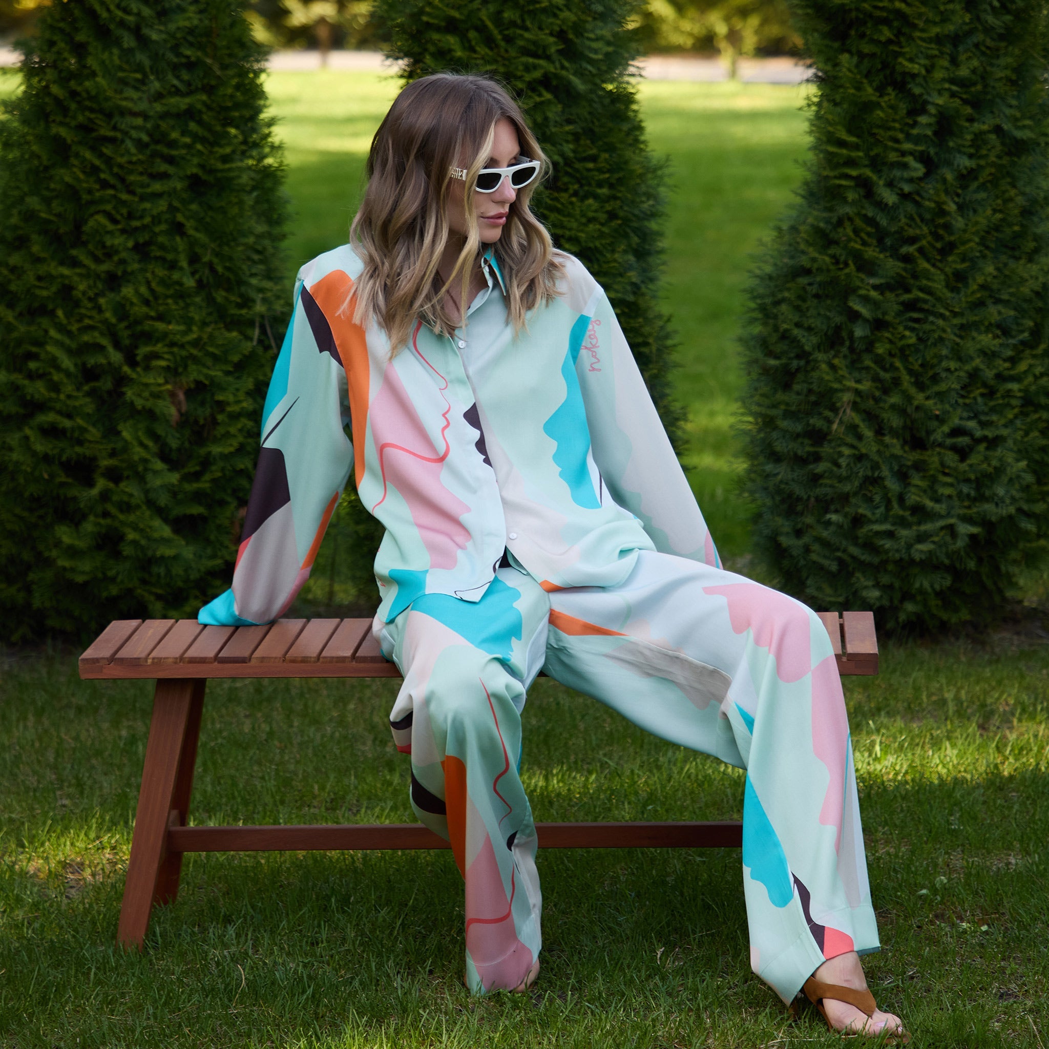 The harmonious green colour, adorned with abstract shapes, brings a modern and artistic touch to the design.