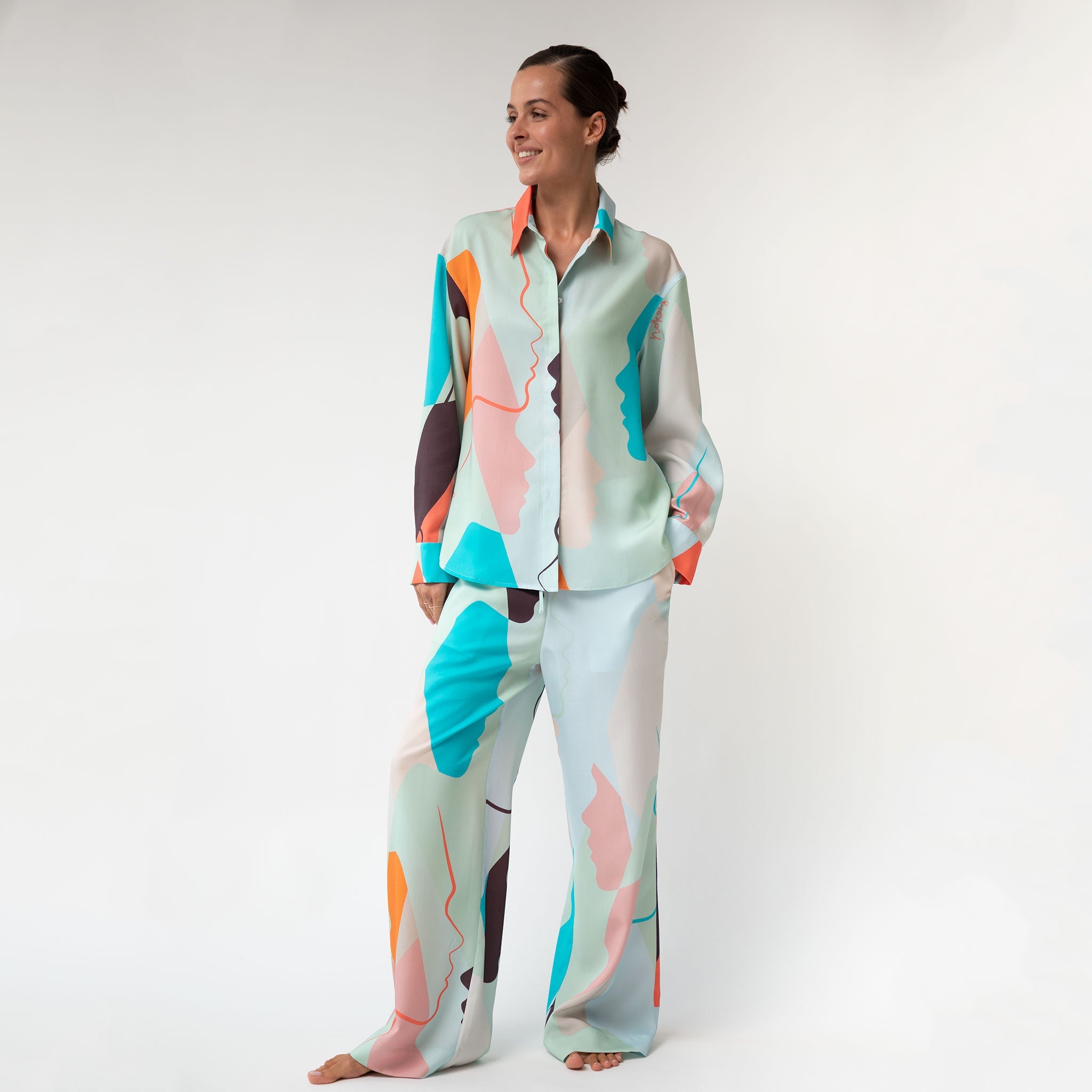 Our signature Us Shirt is a stylish, comfortable piece made from premium Tencel. It features a relaxed straight cut, a neat collar, and a hidden placket with concealed buttons for a clean and refined finish. The relaxed straight cut is designed for comfort and style.