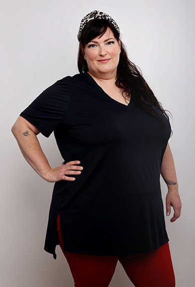 A feather-weight technical fabric with a loose fit. With sweat-wicking panel on the back from neck to hem. The long length tee sits longer at the back for modest coverage.