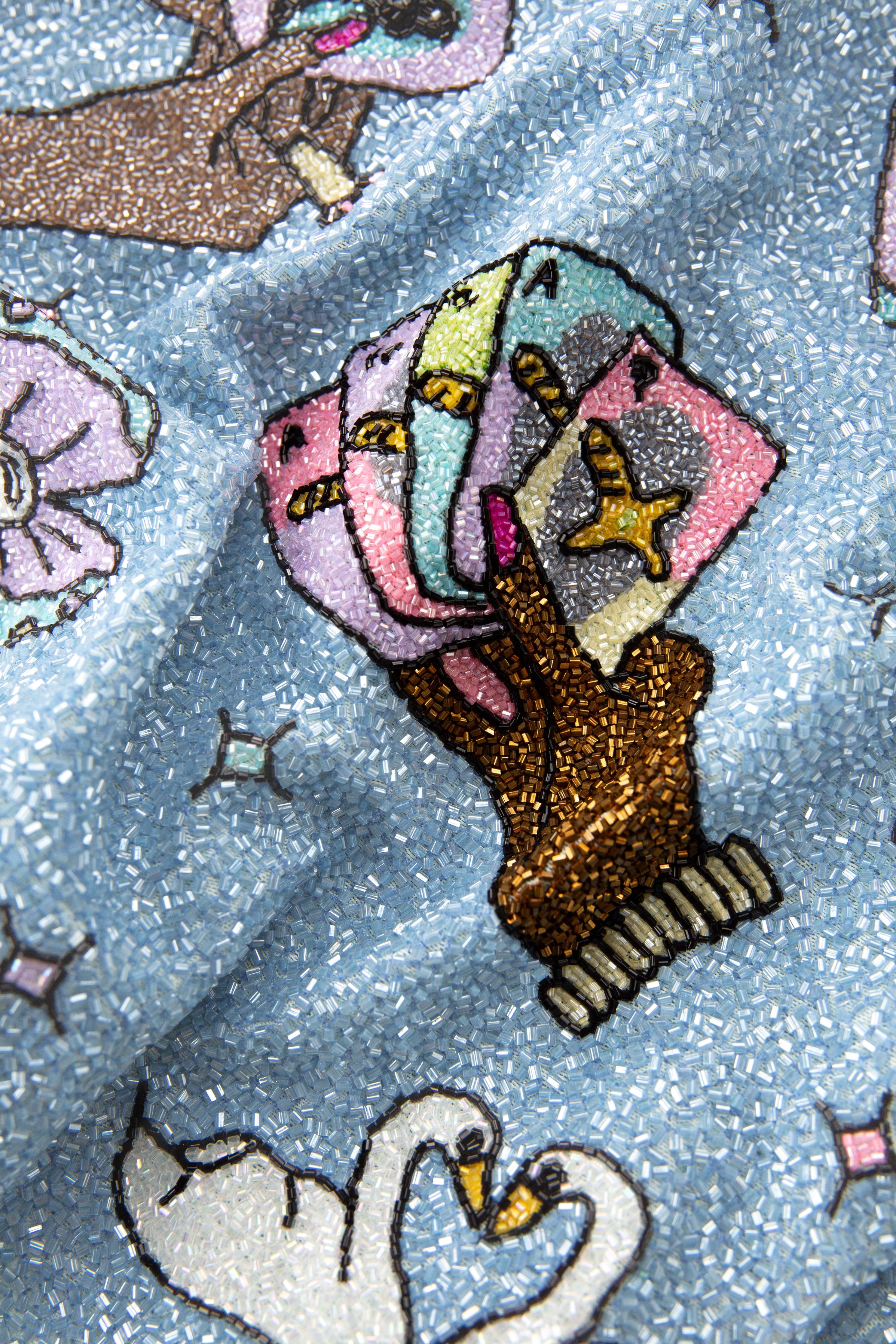 The Vegas Blue Sparkle Embroidered Co-Ord Top is a glamorous party crop top designed for resort wear, nightlife, festivals, and poolside glamour. Featuring playful hand-embroidered motifs (poker hands, cocktails, swans) on shimmering premium fabric, this statement top captures the luxury of Vegas nights. The chic square neckline and body-hugging fit make it a must-have for holiday wardrobes. Available in Blue, Pink, and Black.