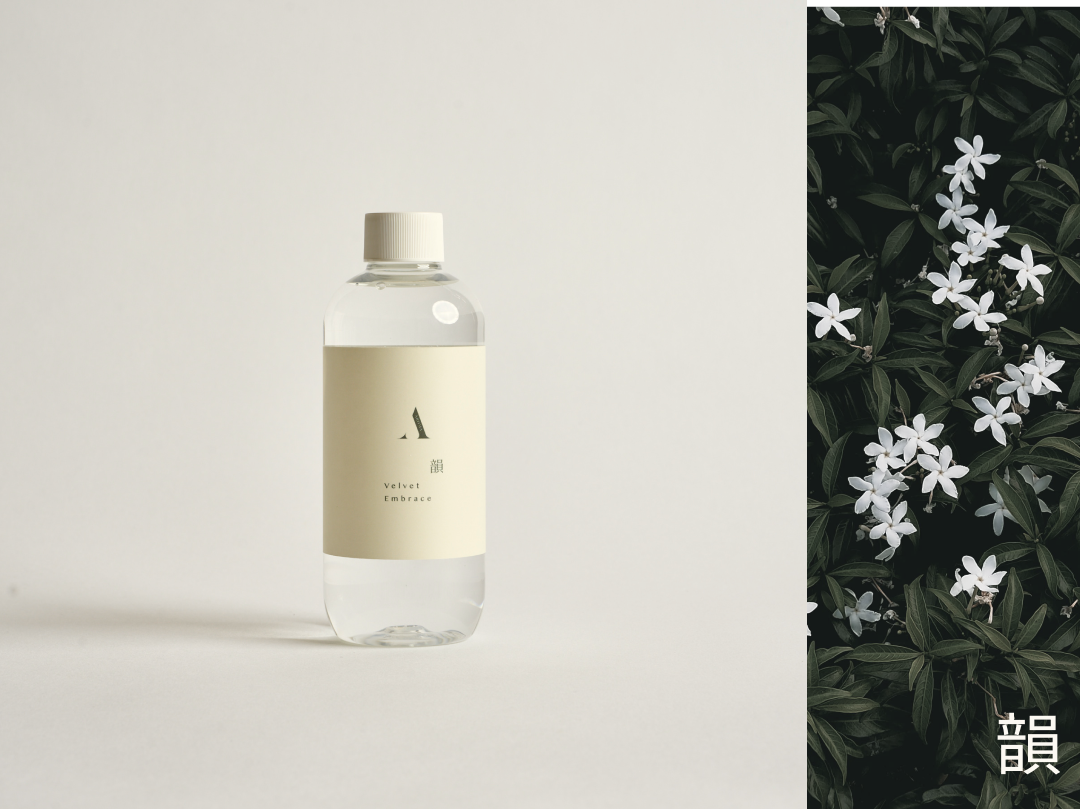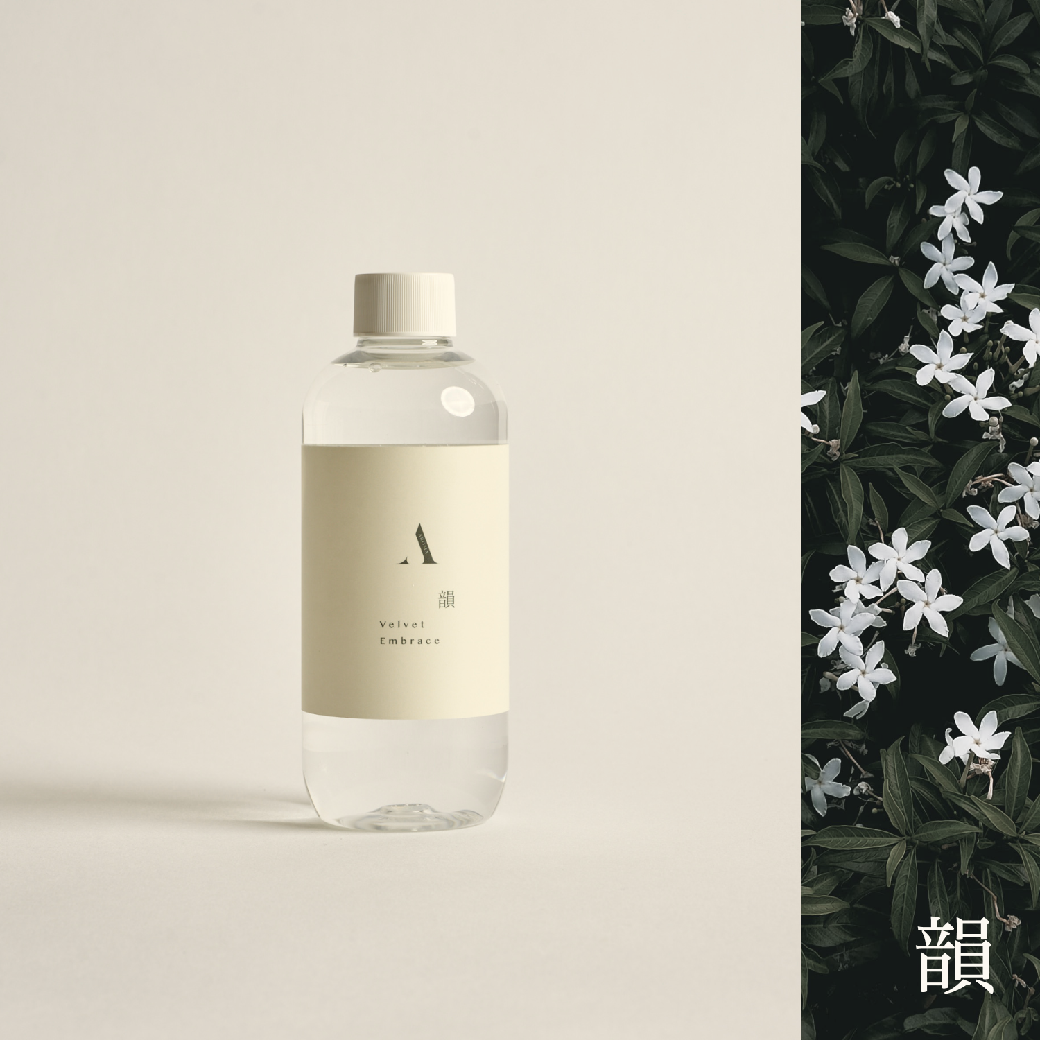 ‘韻 (In)’ sings of elegance and grace, like a melody where each note carries the rhythmic beauty of ancient poetry. This concept inspires Velvet Embrace, a jasmine reed diffuser that uplifts spirits and weaves tales of joy and confidence.