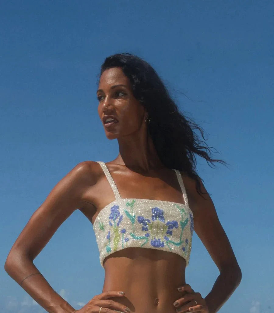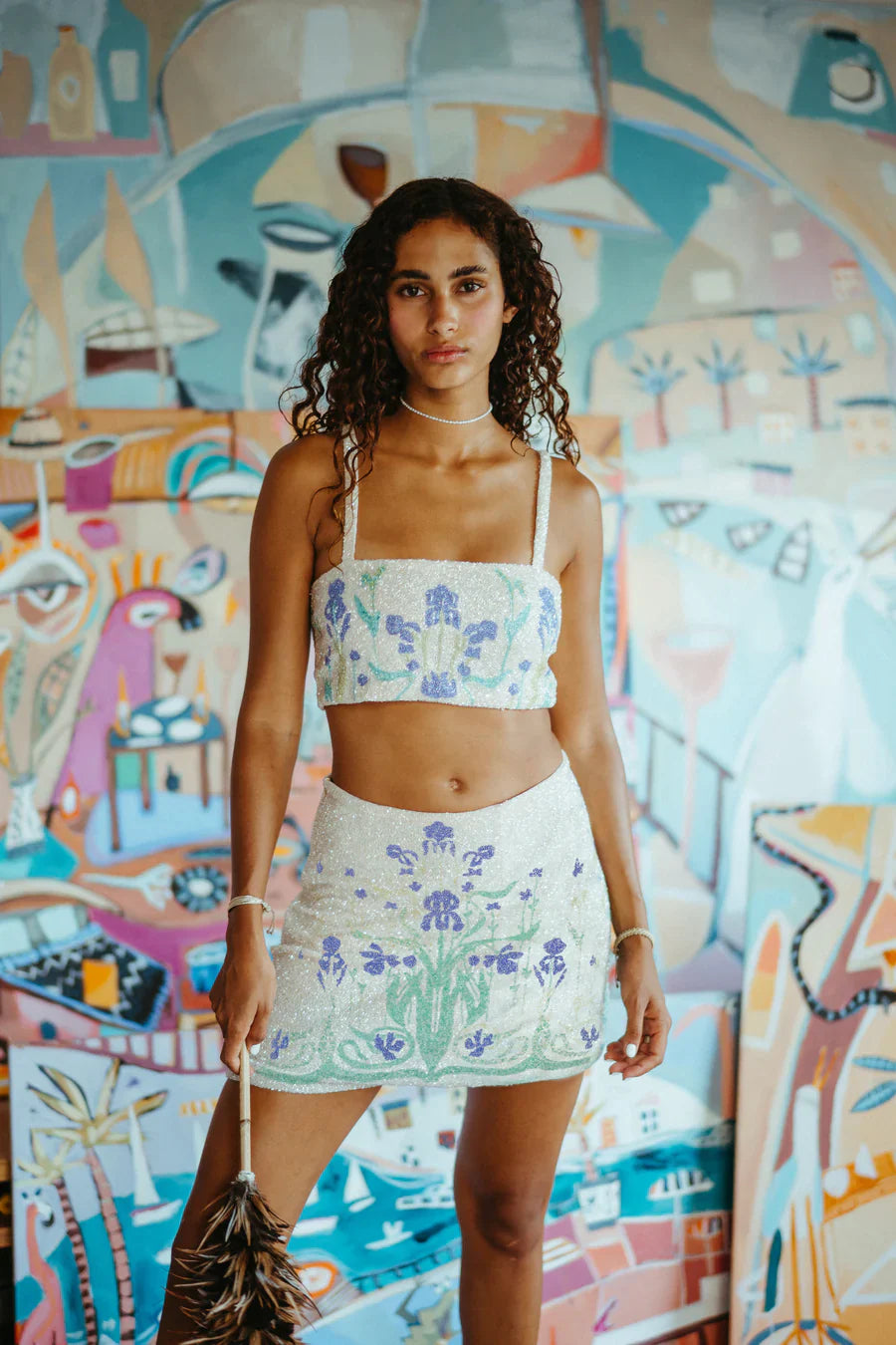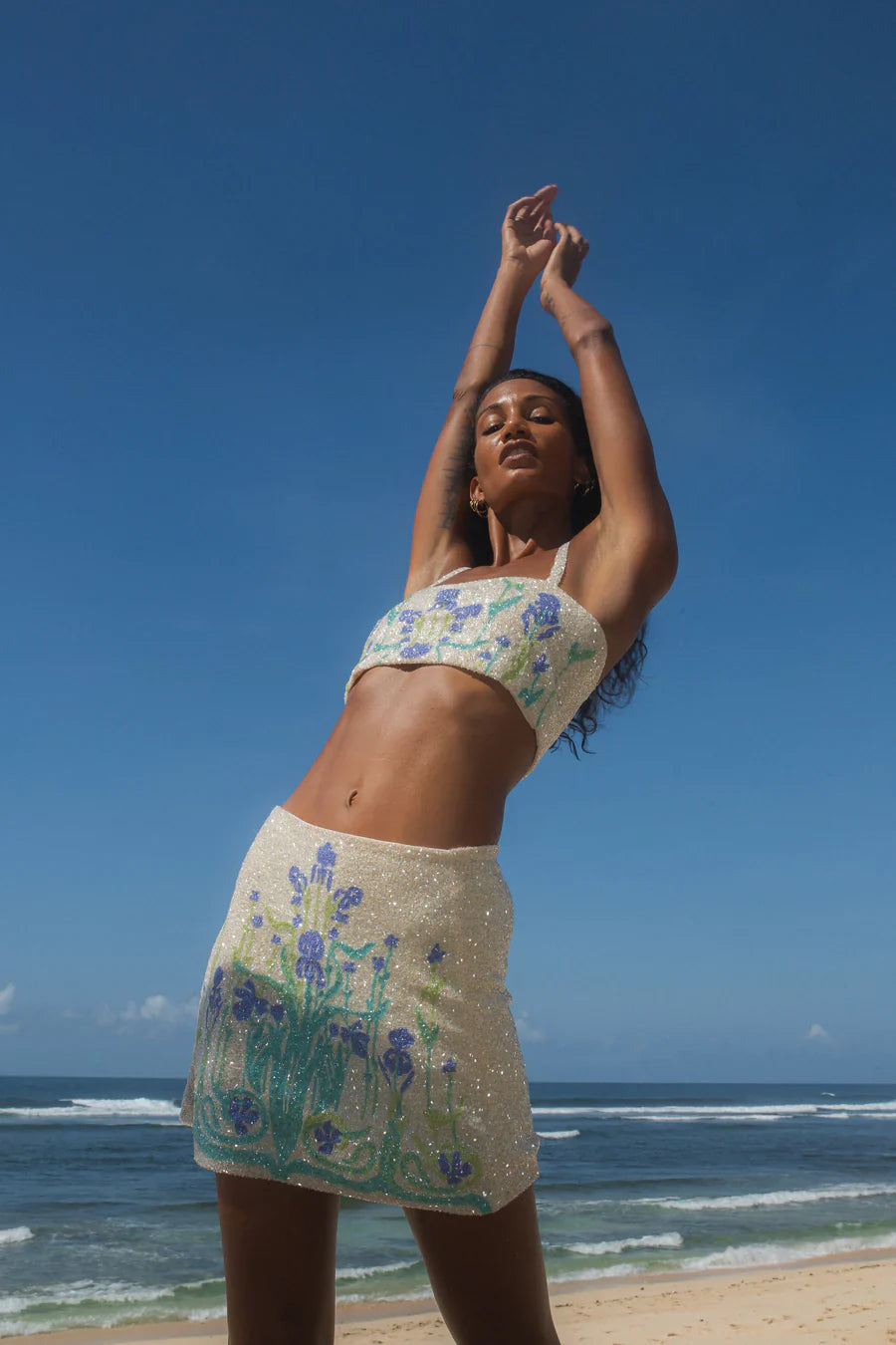 The Venice Hand-Embroidered Co-Ord Top is a luxury crop top handcrafted with eco-friendly power mesh and dazzling crystal embellishments. Featuring ocean-inspired motifs and artisan embroidery, this statement designer co-ord top is perfect for beach parties, summer festivals, or elegant resort wear. Handmade with care in a flattering pull-on design.