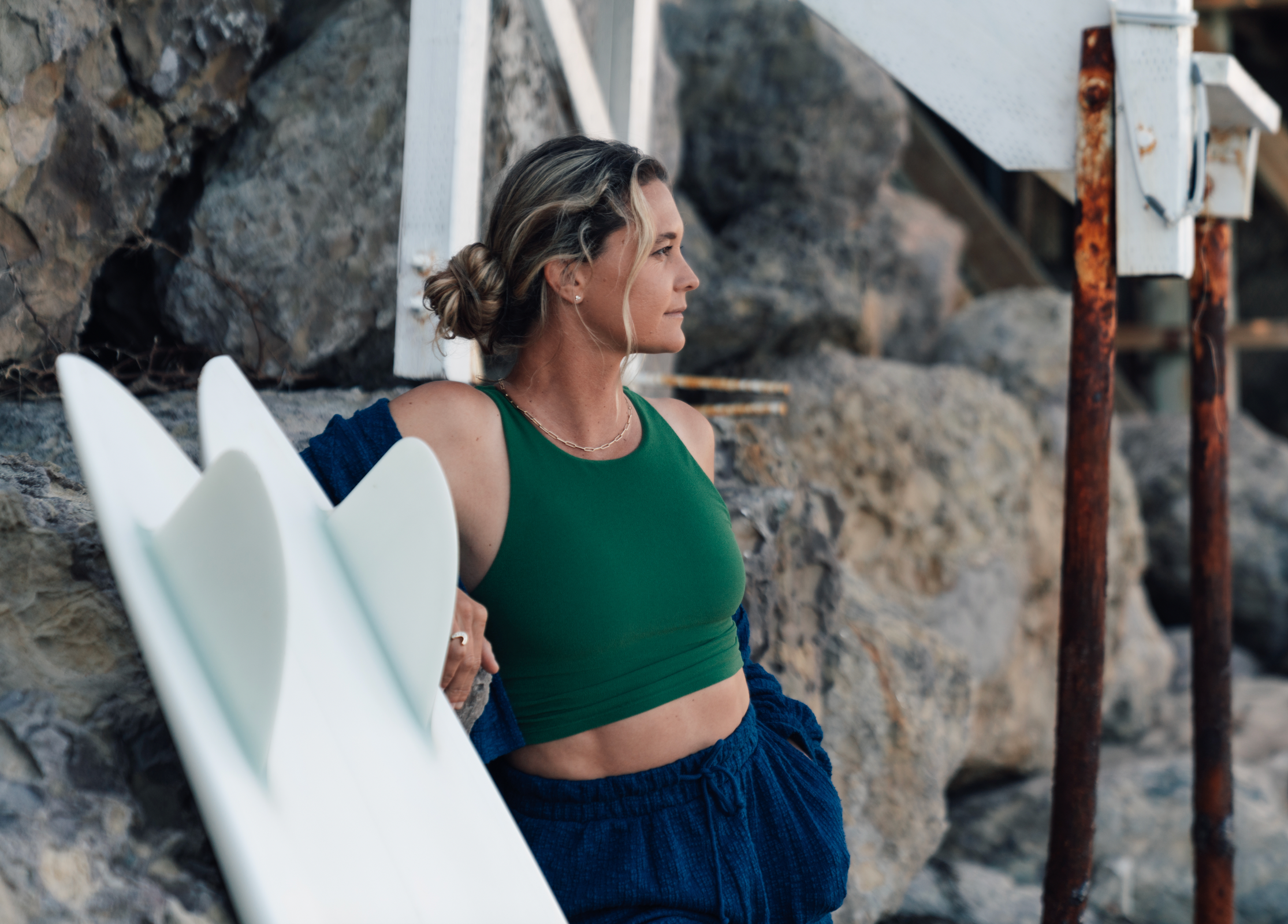 High society, high neck, and high class. Vera is a tankini top that hits just below the waist. It even has a built-in shelf to support the girls even more. Pair with the Mary shorts for a full outfit or any of our bottoms for something a little more flexible.