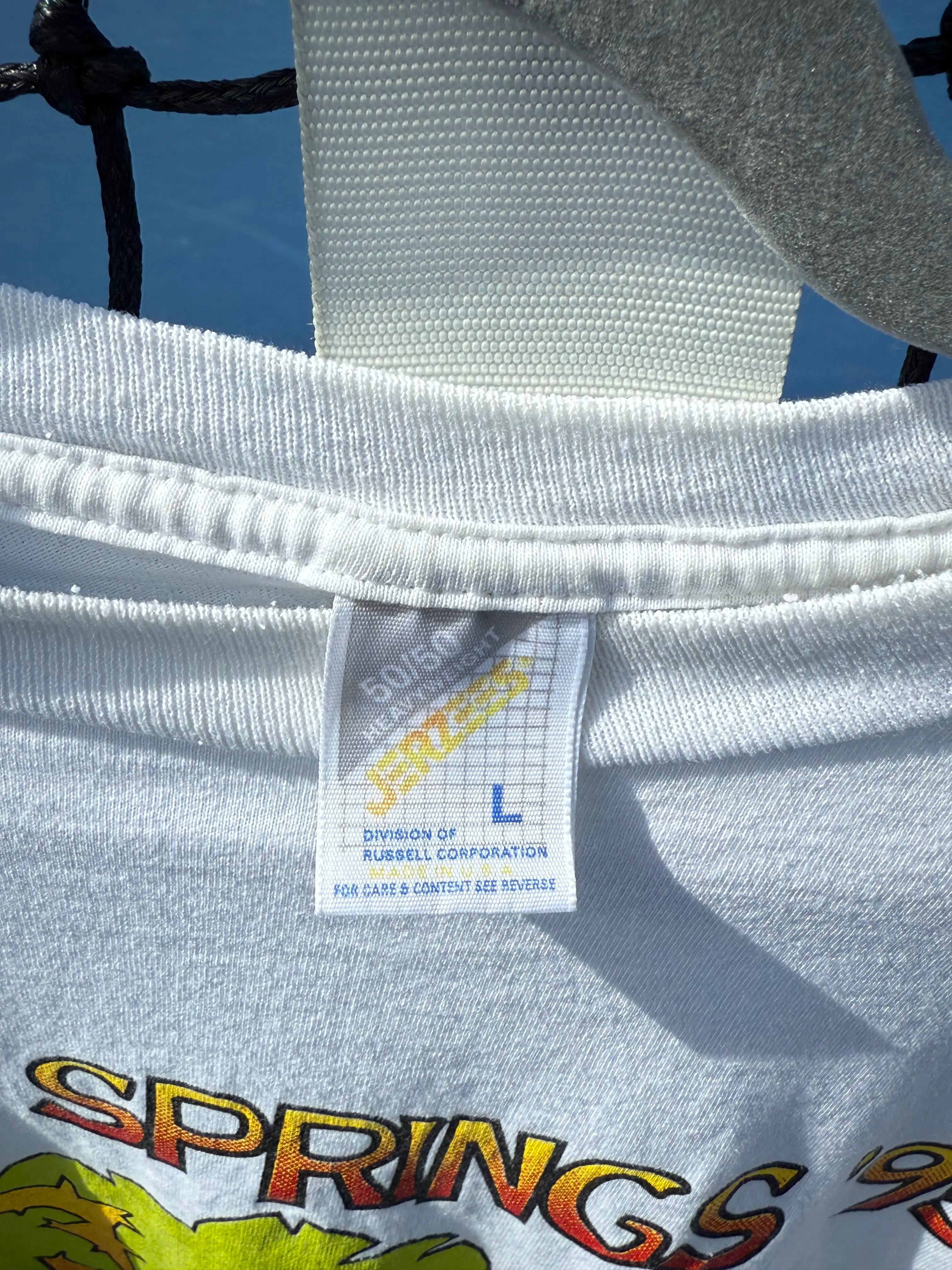 Step back into the golden age of desert tennis with the Palm Springs ’95 Tee. This vintage-inspired graphic T-shirt captures the retro energy of a 90s tennis getaway, complete with bold sunset tones and palm tree silhouettes.