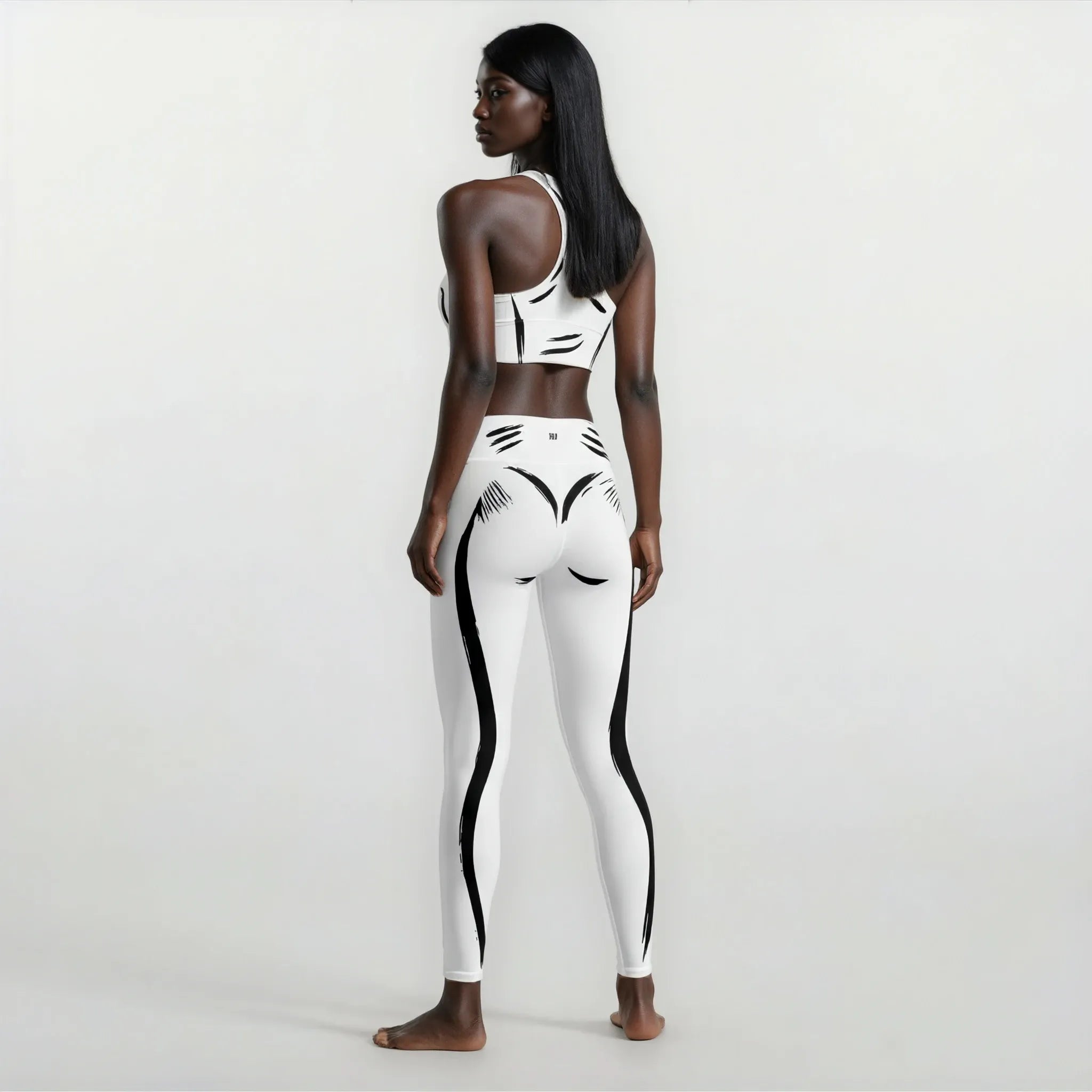 The black contour lines highlight your curves, while the smooth white fabric shapes and supports your silhouette for a secure, confident feel.