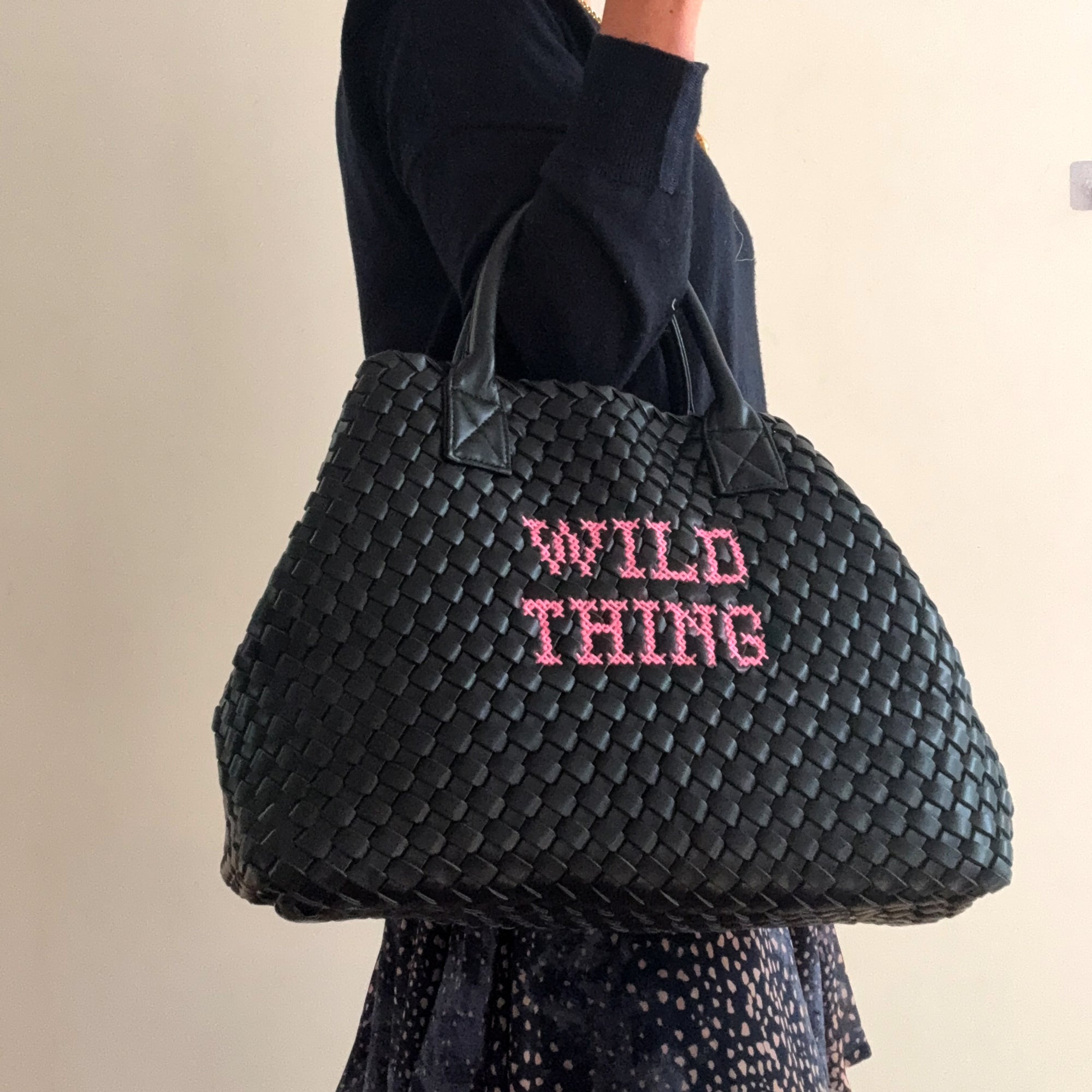 Get ready to take on the day with our Wild Thing shoulder bag, crafted from soft, hand-woven vegan leather! Featuring a clever detachable inner pouch inside the roomy main compartment, this playful bag is perfect for work or weekend fun. Handmade with top-quality embroidery, it’s your go-to companion for everyday adventures with a cheeky twist.