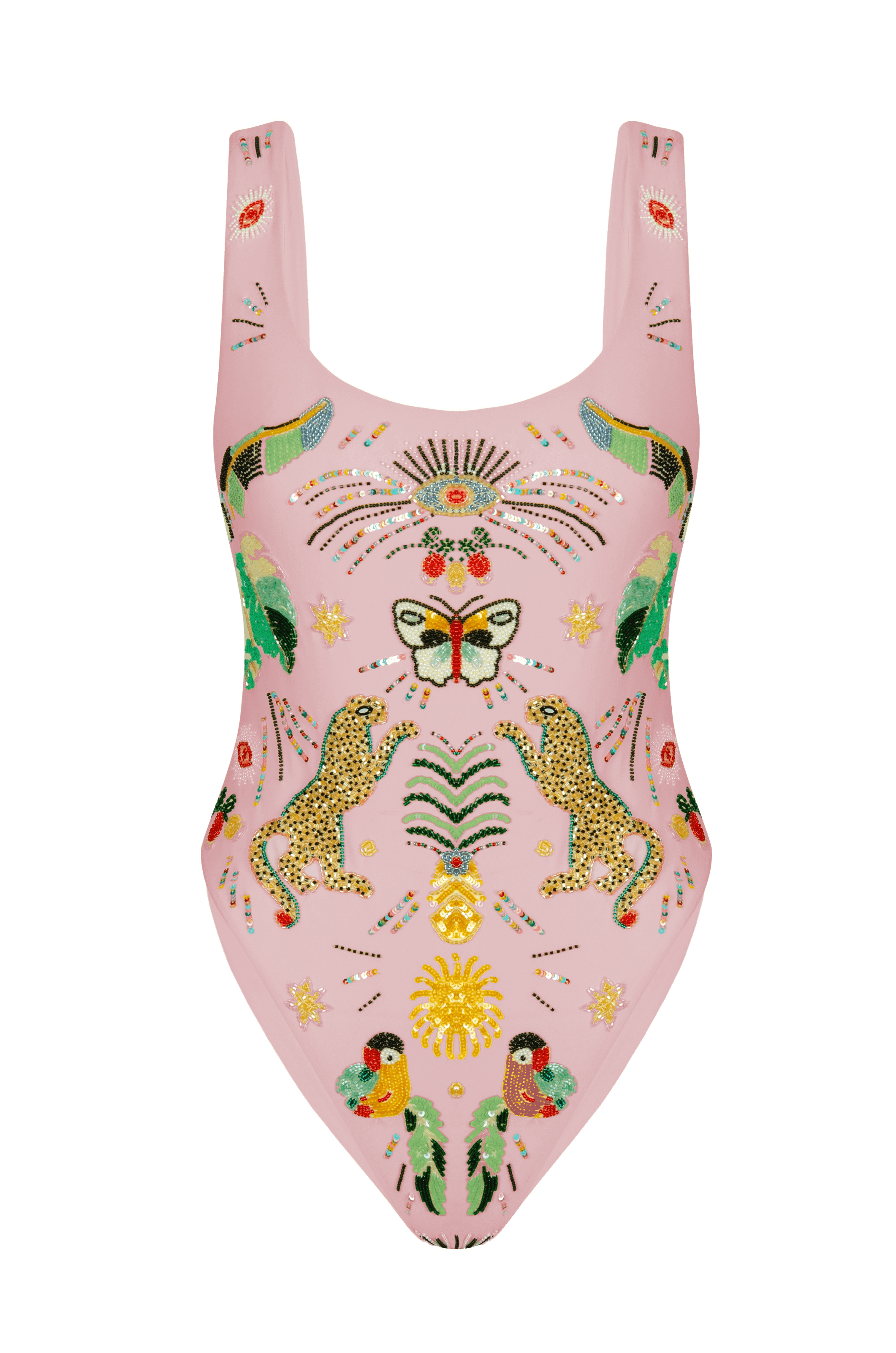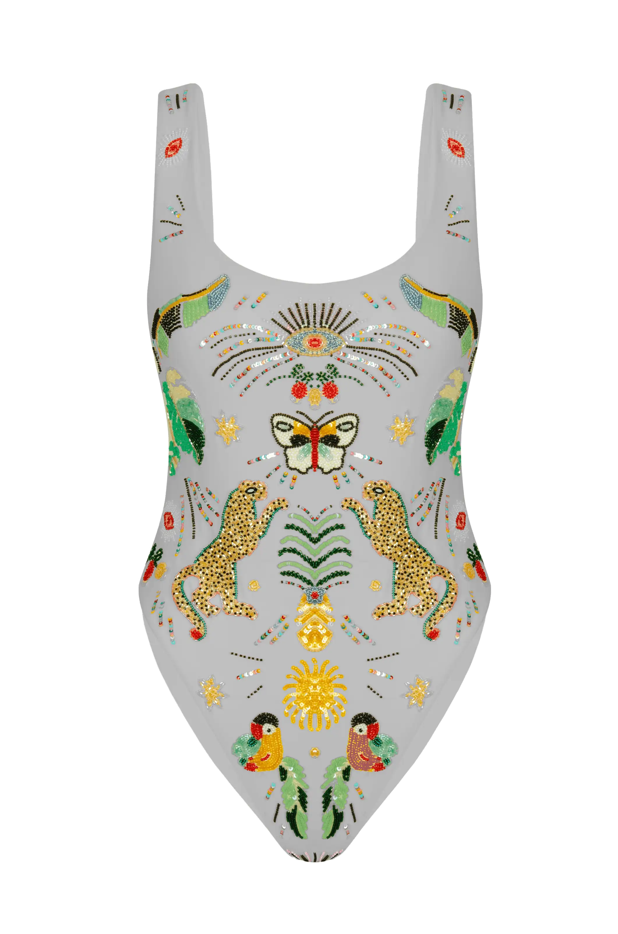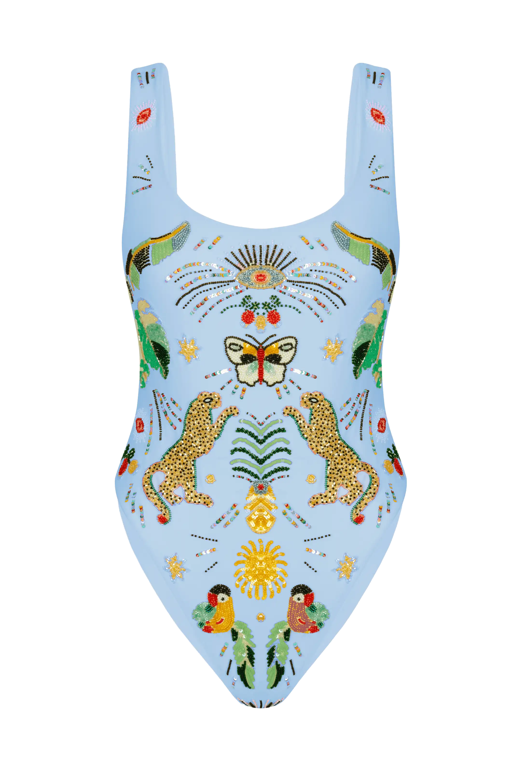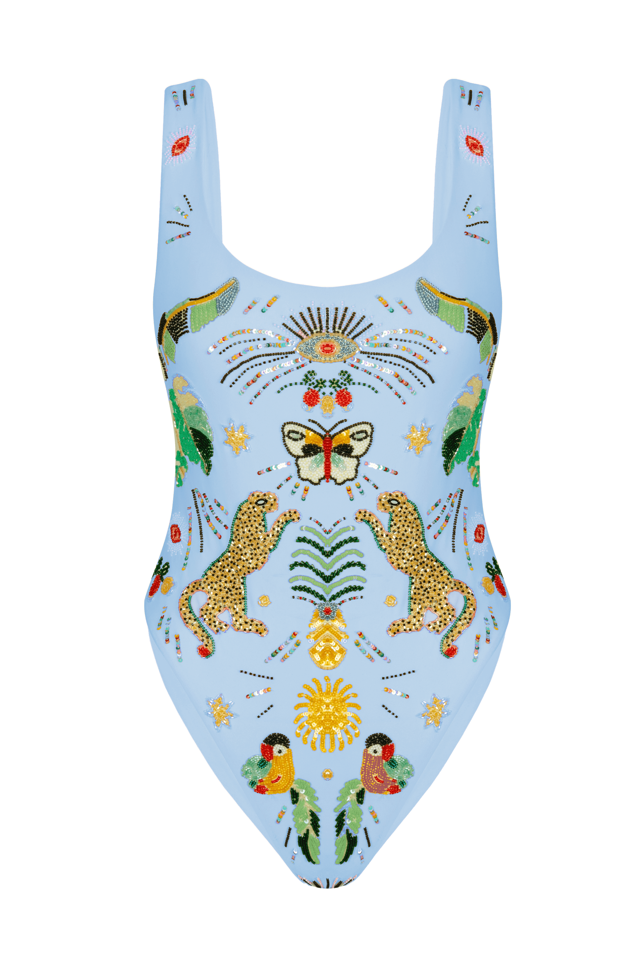 Inspired by our founder's new tropical home in Bali, WILLOW is our new signature swimsuit for the season. WILLOW features hand-embroidered tropical elements on an eco-friendly, pale yellow nylon base.