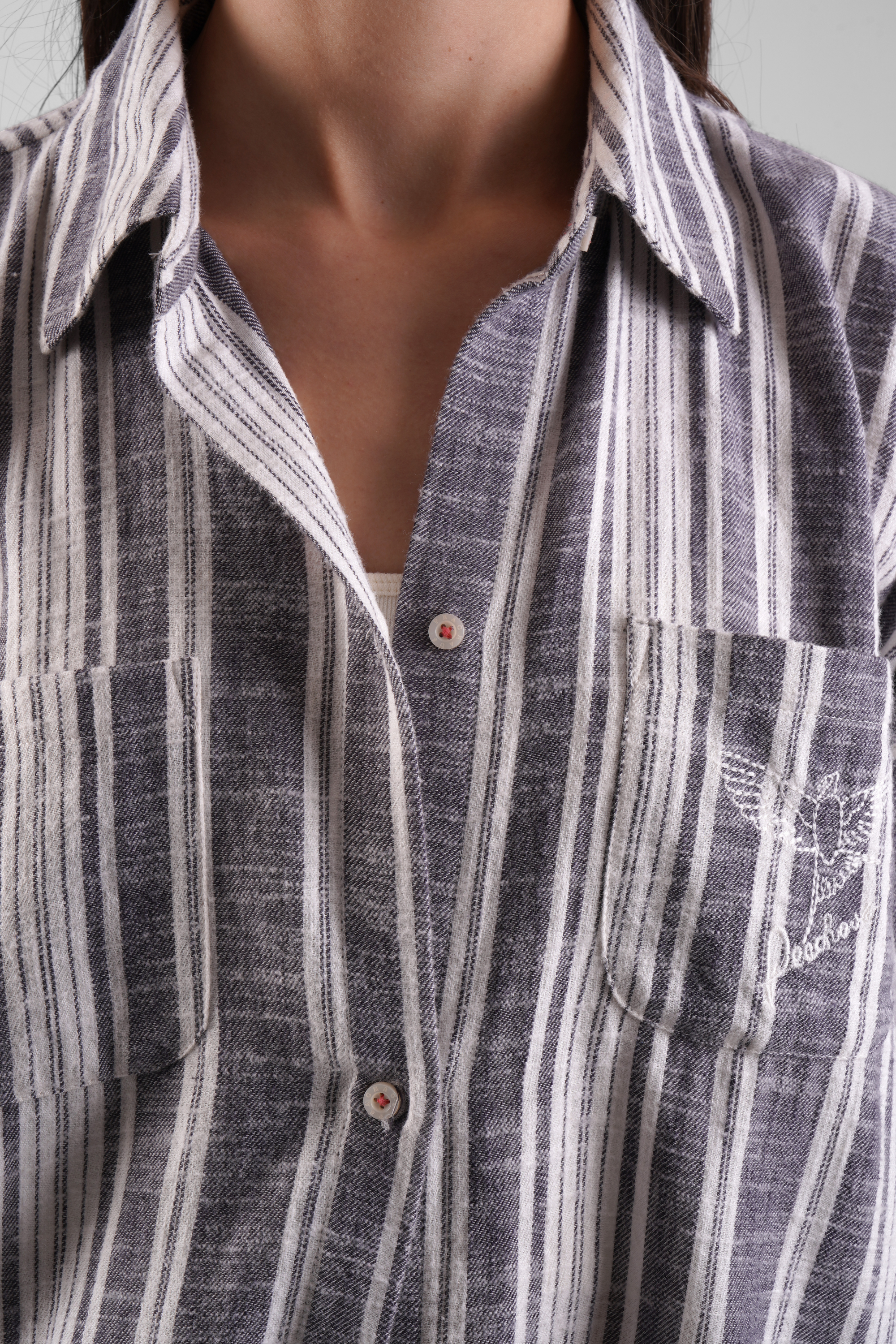 If you're already a fan of our sleep shirts will love this new update to our collection. Made from the softest brushed cotton, the Willow shirt has been designed to put comfort first. Super soft and cosy with the perfect drape, Willow has two handy front pockets, with one featuring our embroidered logo and vented cuffs. Perfectly pairs with our new Osier pyjama trousers and Daisy shorts.
