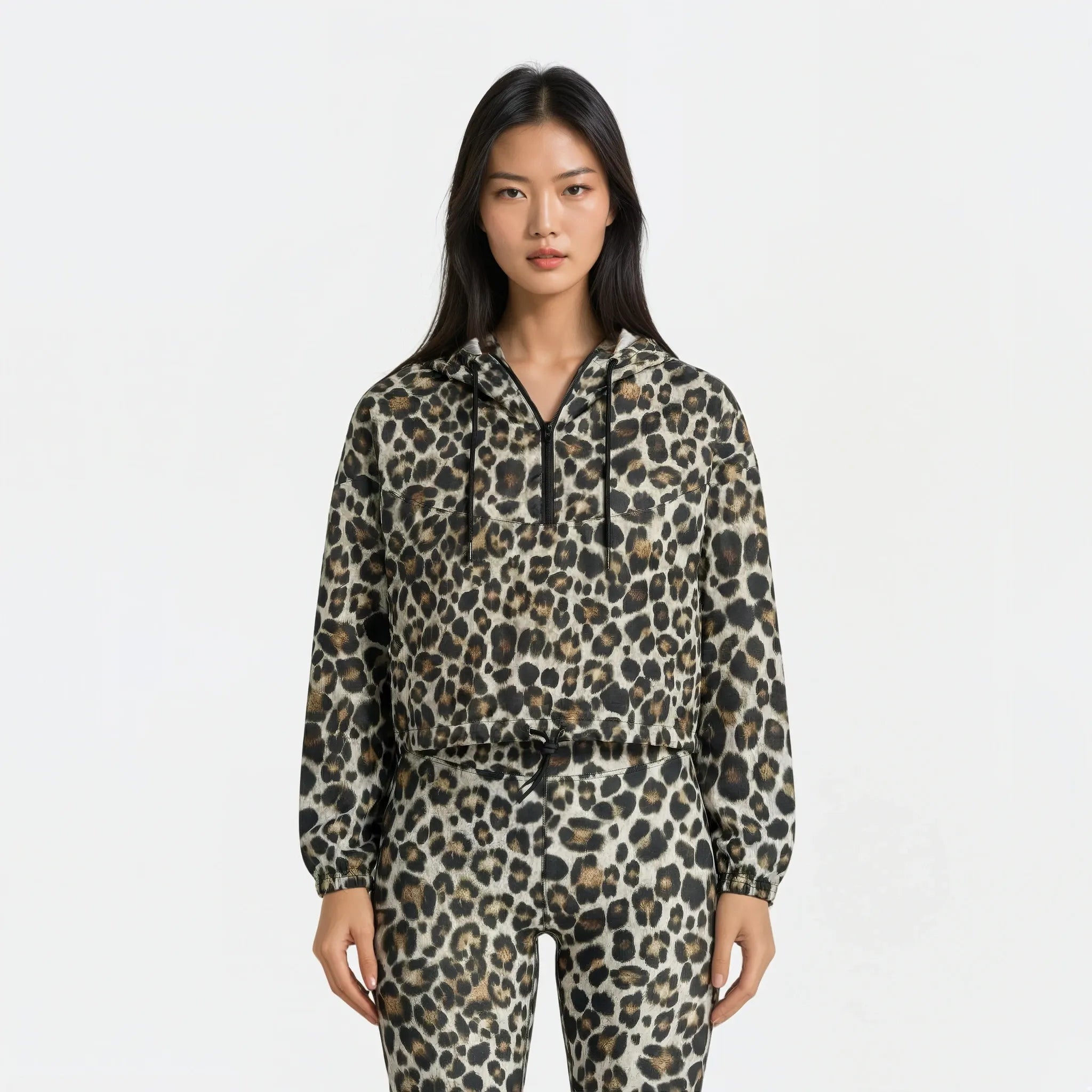 The Cropped Windbreaker – Leopard Edition is made for movement with attitude. Lightweight, wind-resistant, and effortlessly bold, it turns a classic silhouette into a statement piece. The cropped fit flatters your shape, while the drawstring hem and hood let you adjust for comfort and style.