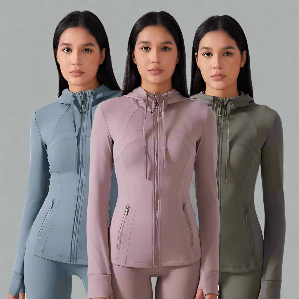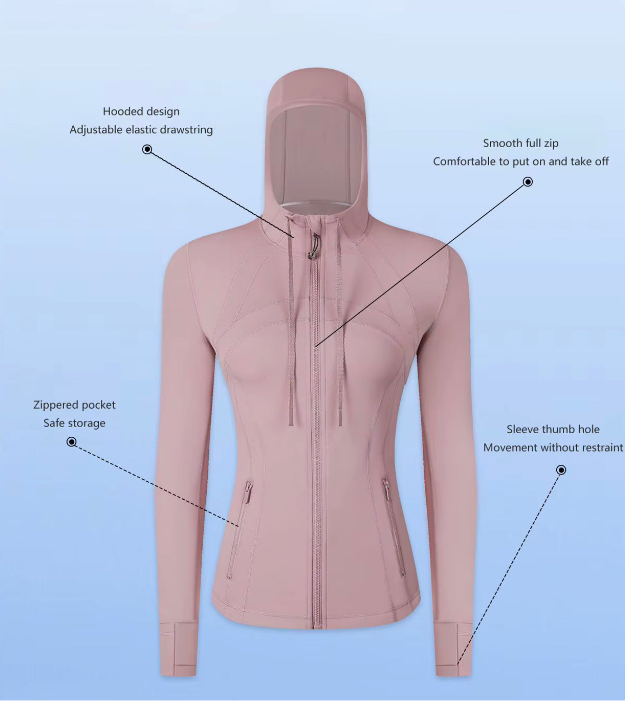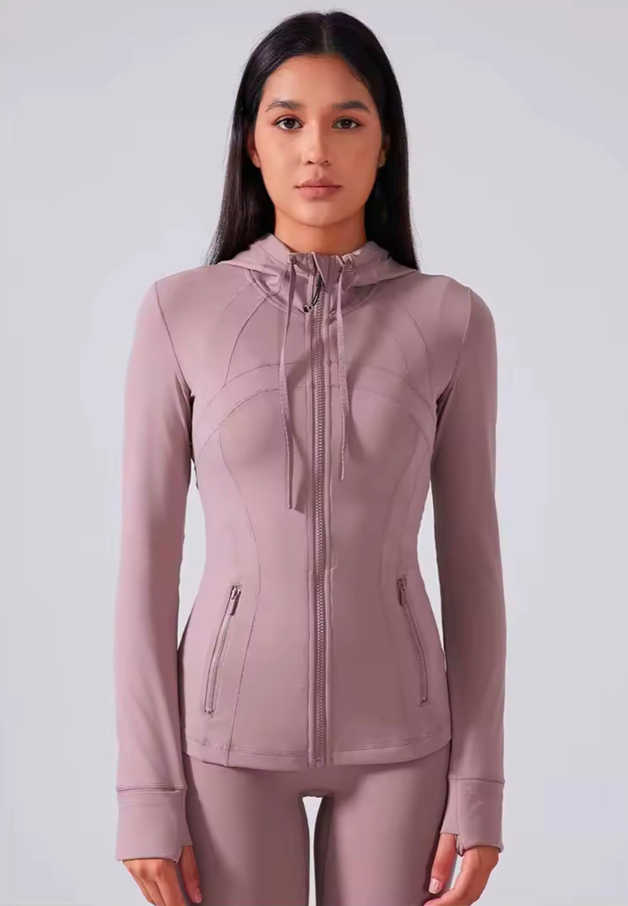 Elevate your fitness with our Women's Fitness Zip Jacket, perfect for running, tennis, or everyday comfort. The mesh back design allows your body to breathe, while the cuffs keep you warm. This jacket also includes two side pockets for your essentials, made from our signature airbrushed fabric for ultimate performance.