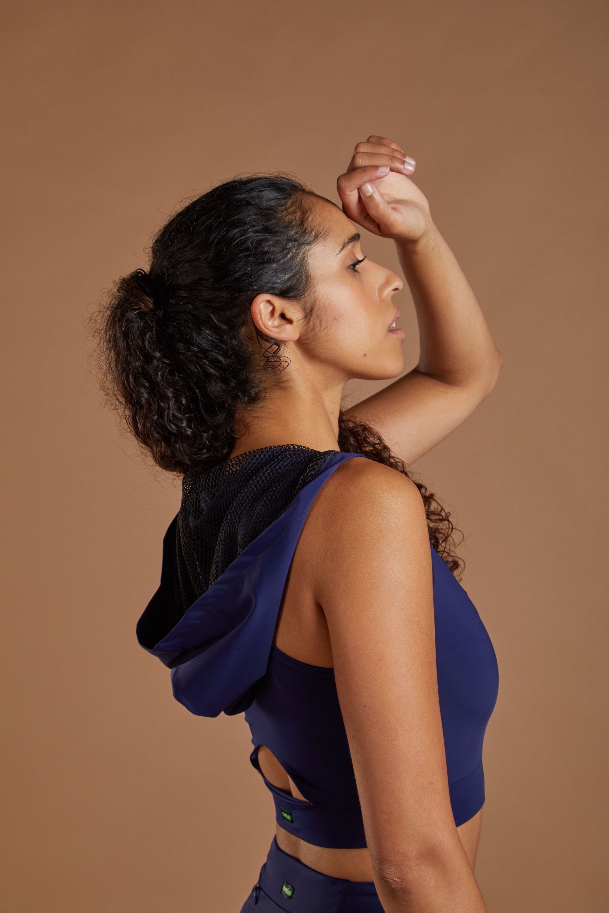 Where function and fashion collide, our hooded sports bra is the perfect flattering addition to your workout gear. Featuring a mesh hood with a cut-out front detail to accentuate your silhouette.